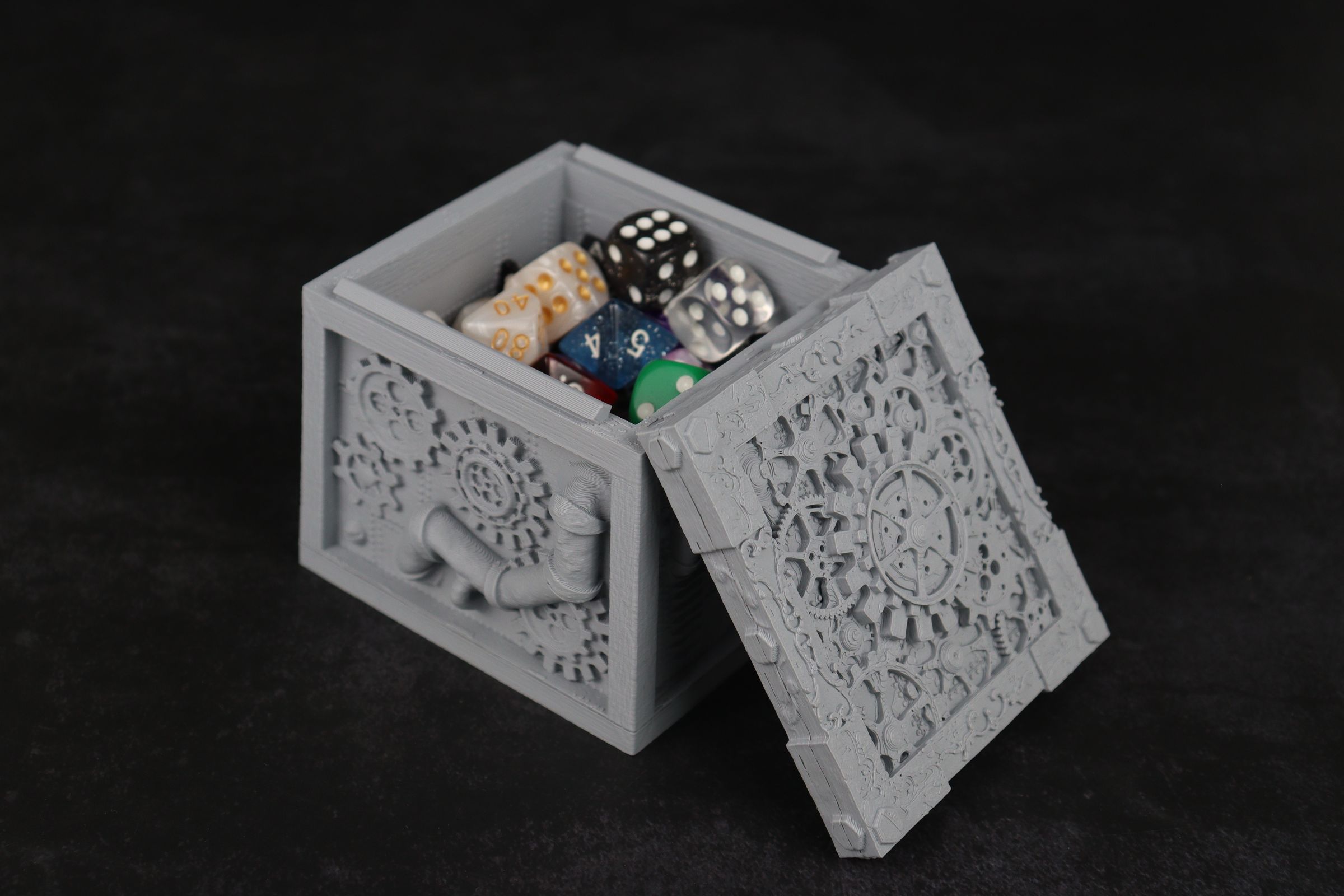 3D printed - detailed dice jail. The Dice Jail can also be used as a terrain part for your miniatures game or as a center piece for your next DnD session.