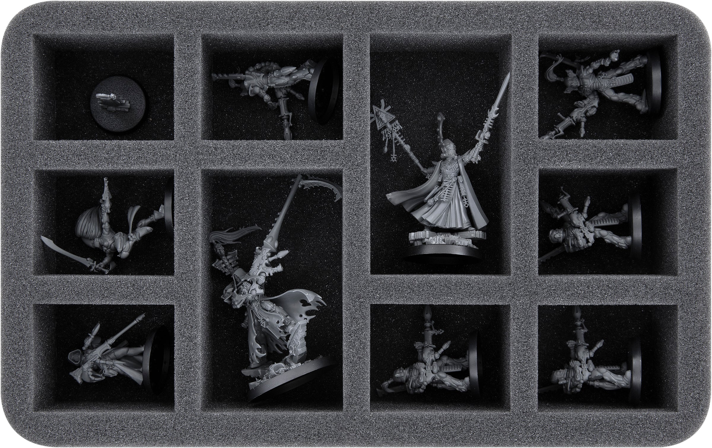 - 2 Half-Size foam trays with 10 compartments for bulky infantry models like Dark Reapers, Rangers, character models like Maugan Ra, Eldrad Ulthran and models with similar dimensions (HS050A098)