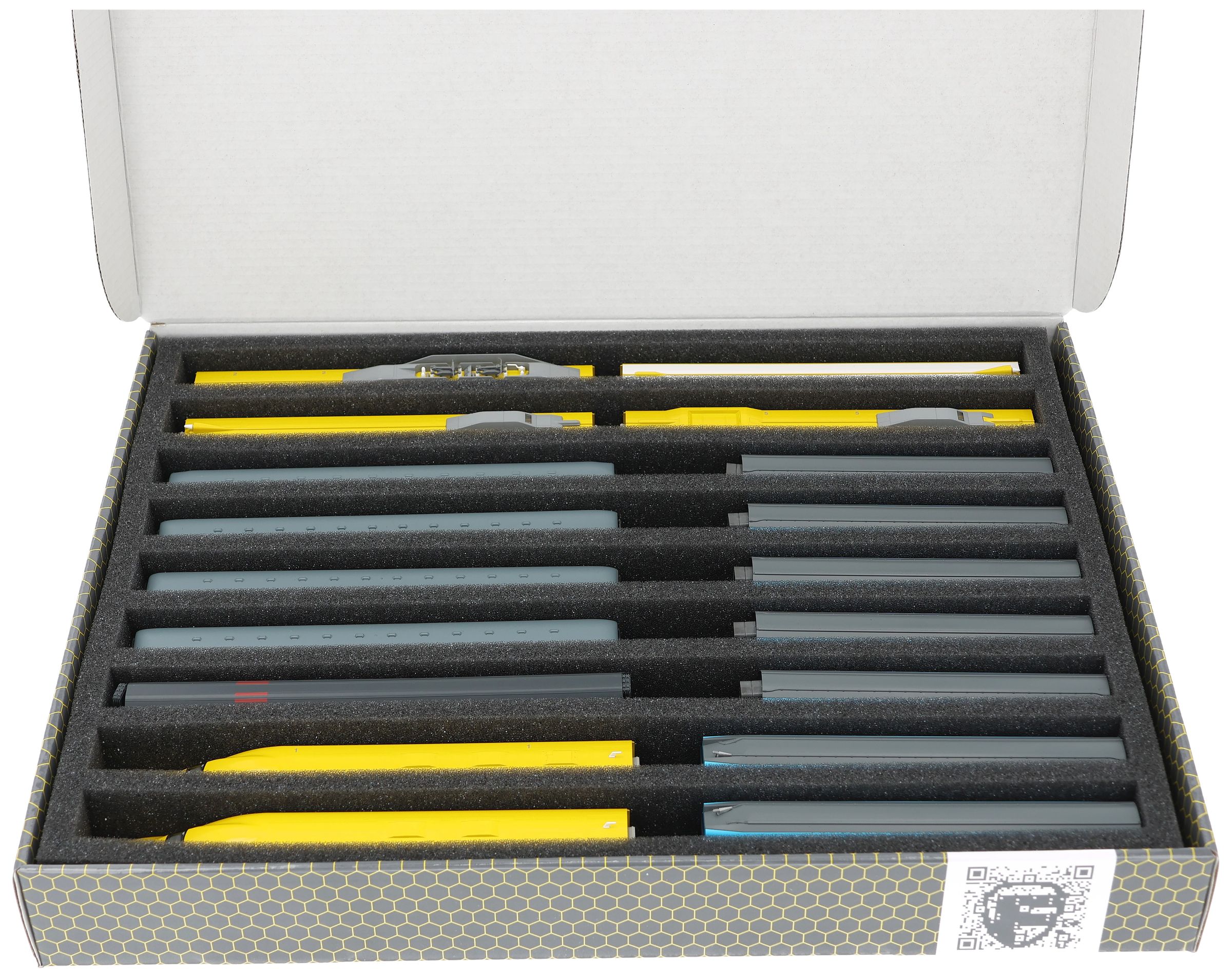 Caja de almacenamiento Feldherr FSLB040 para maquetas de locomotoras, vagones y vehículos ferroviarios - 9 ranuras para ancho N vertical
