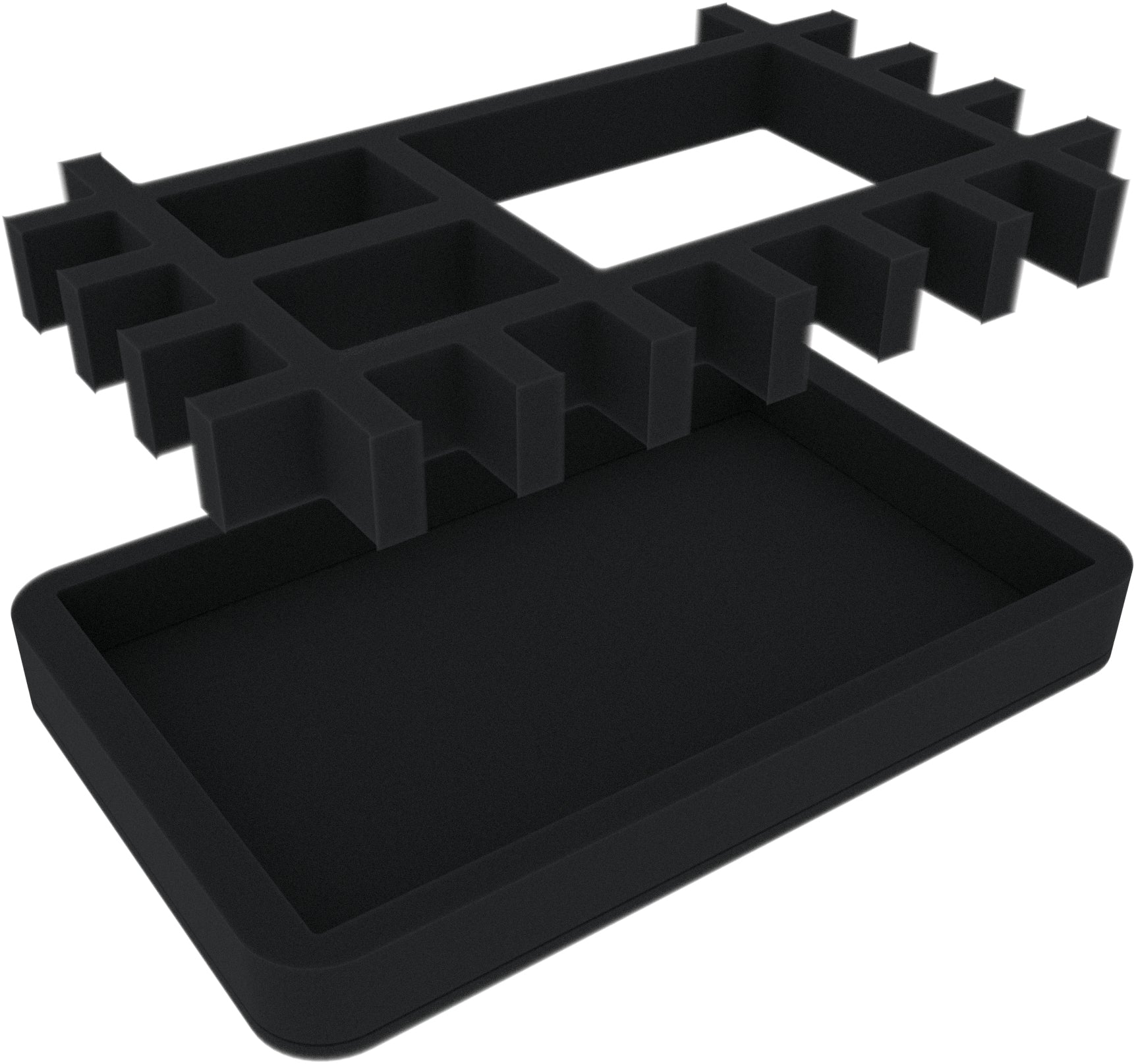 Para una fácil conversión de la bandeja de lanzamiento de dados en una bandeja de espuma Half-Size para guardar el material de juego, se incluye un inserto a juego. Esto encaja exactamente en el gran compartimento de la bandeja y le permite almacenar y transportar todos los accesorios importantes que necesita para el RPG de sobremesa.