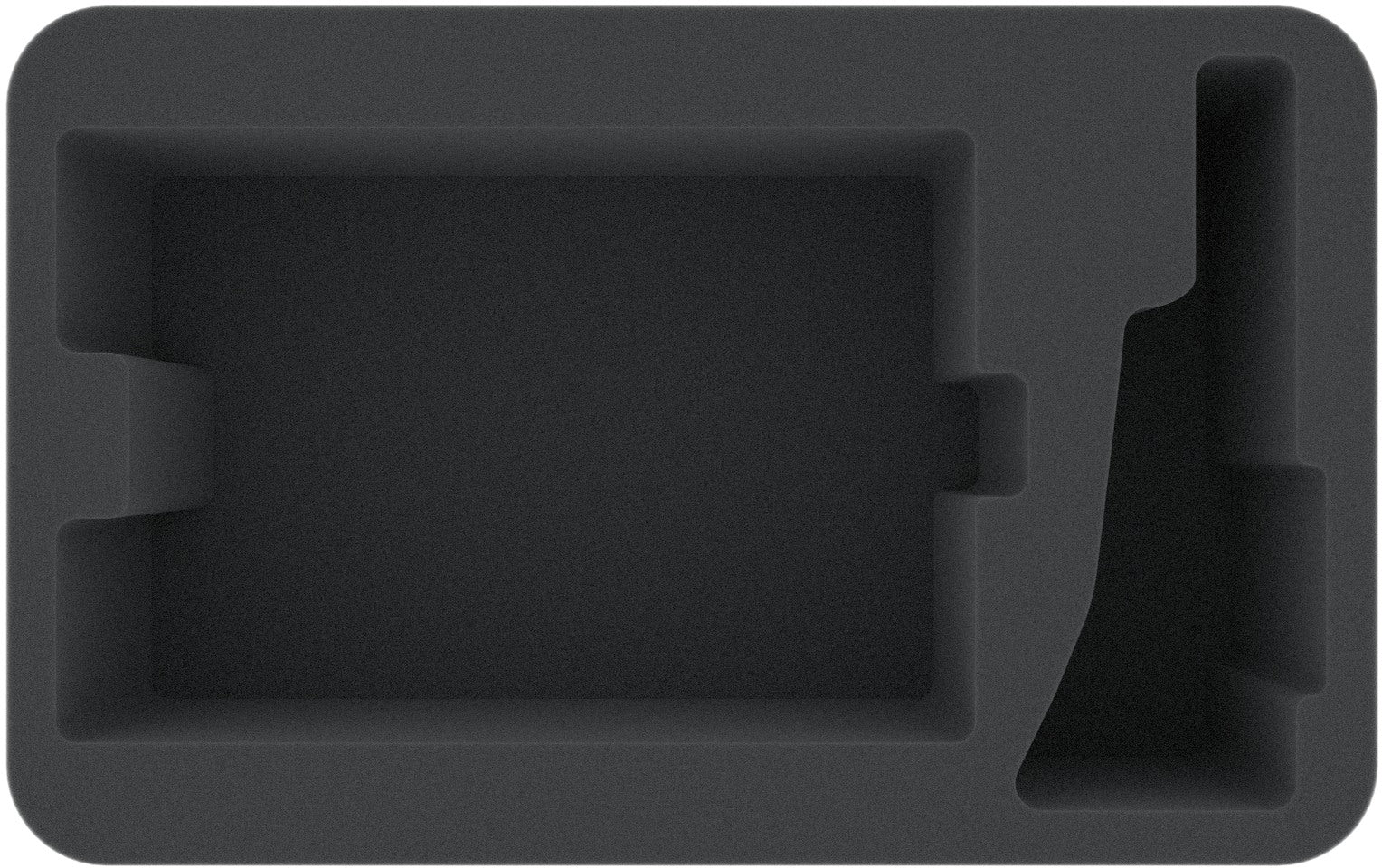 El gran compartimento de este inserto Half-Size aloja el casco del tanque de combate antigravitacional. El compartimento está exactamente hecho a medida para el Verdugo Repulsor de los Marines Espaciales de Primaris y asegura que la miniatura esté bien embalada por todas partes. Los lanzagranadas Krakstorm y los dos pernos de tormenta permanecen tan intactos durante el transporte como los conjuntos de radares.