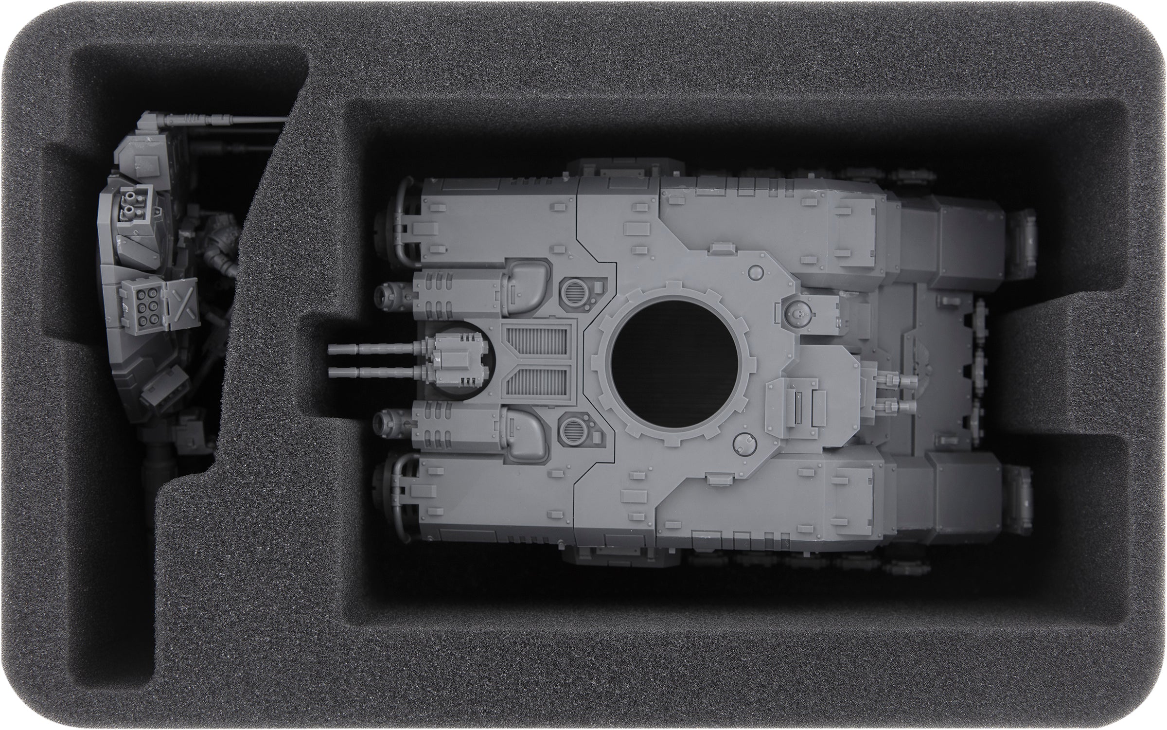 Para transportar esta enorme potencia de fuego de forma segura a los campos de batalla, ponemos a su disposición esta bandeja de espuma Feldherr hecha a medida para su modelo.
