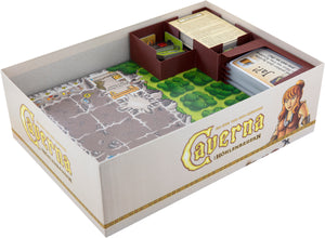 Optimized storage for Caverna ensures that markers, resources, tiles and cards remain clearly sorted and the game is set up more quickly. Matching inlays, inserts and transport solutions keep all components protected and well-organized in the game box or in a separate box.