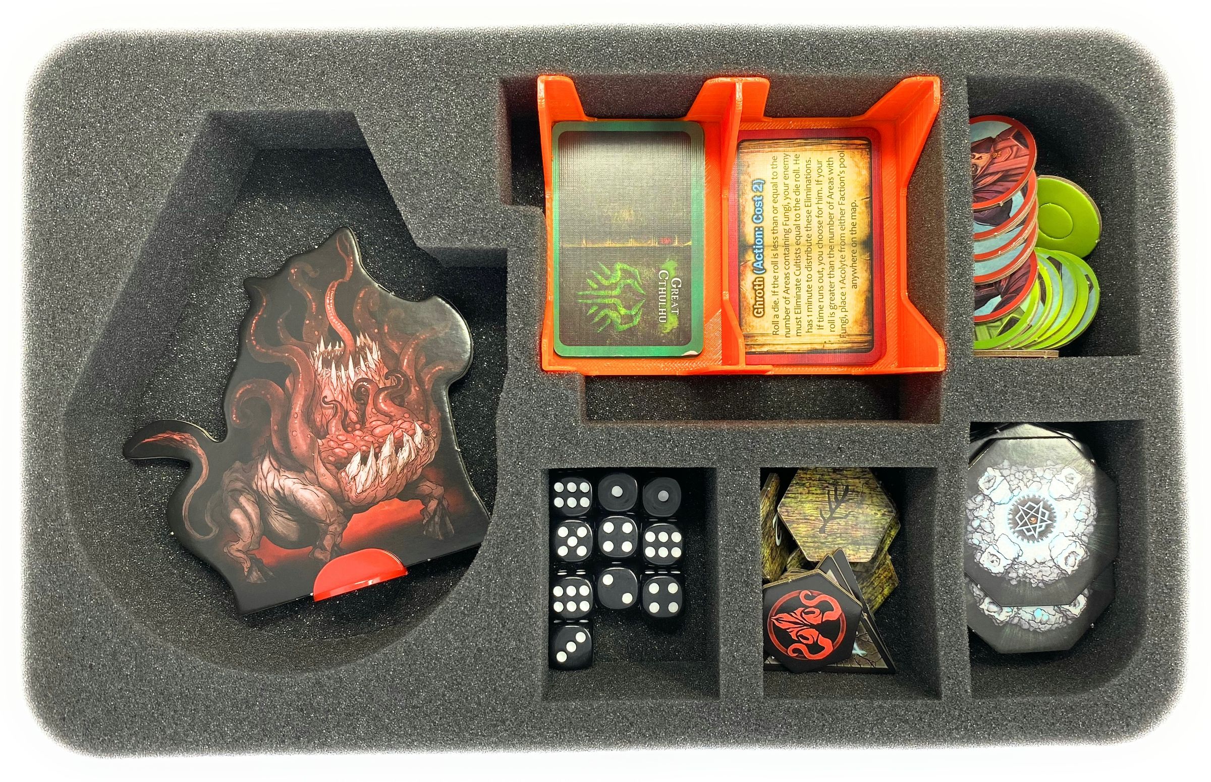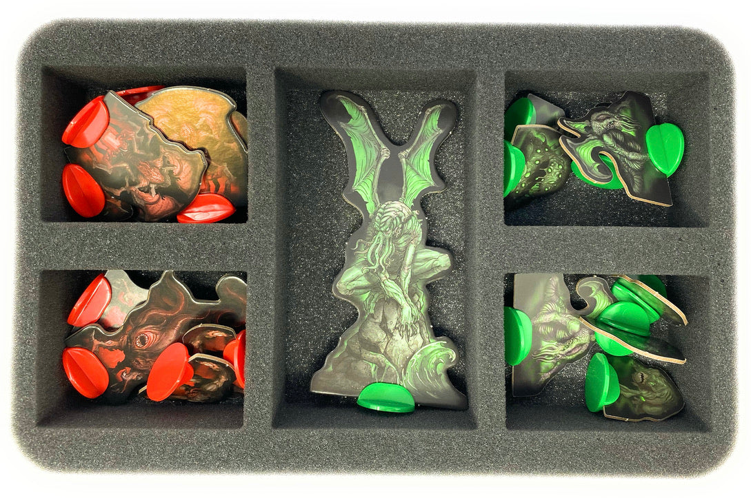 - The compact Storage Box incl. foam inserts offer space for all the game material of the Cthulhu Wars: Duel - core game