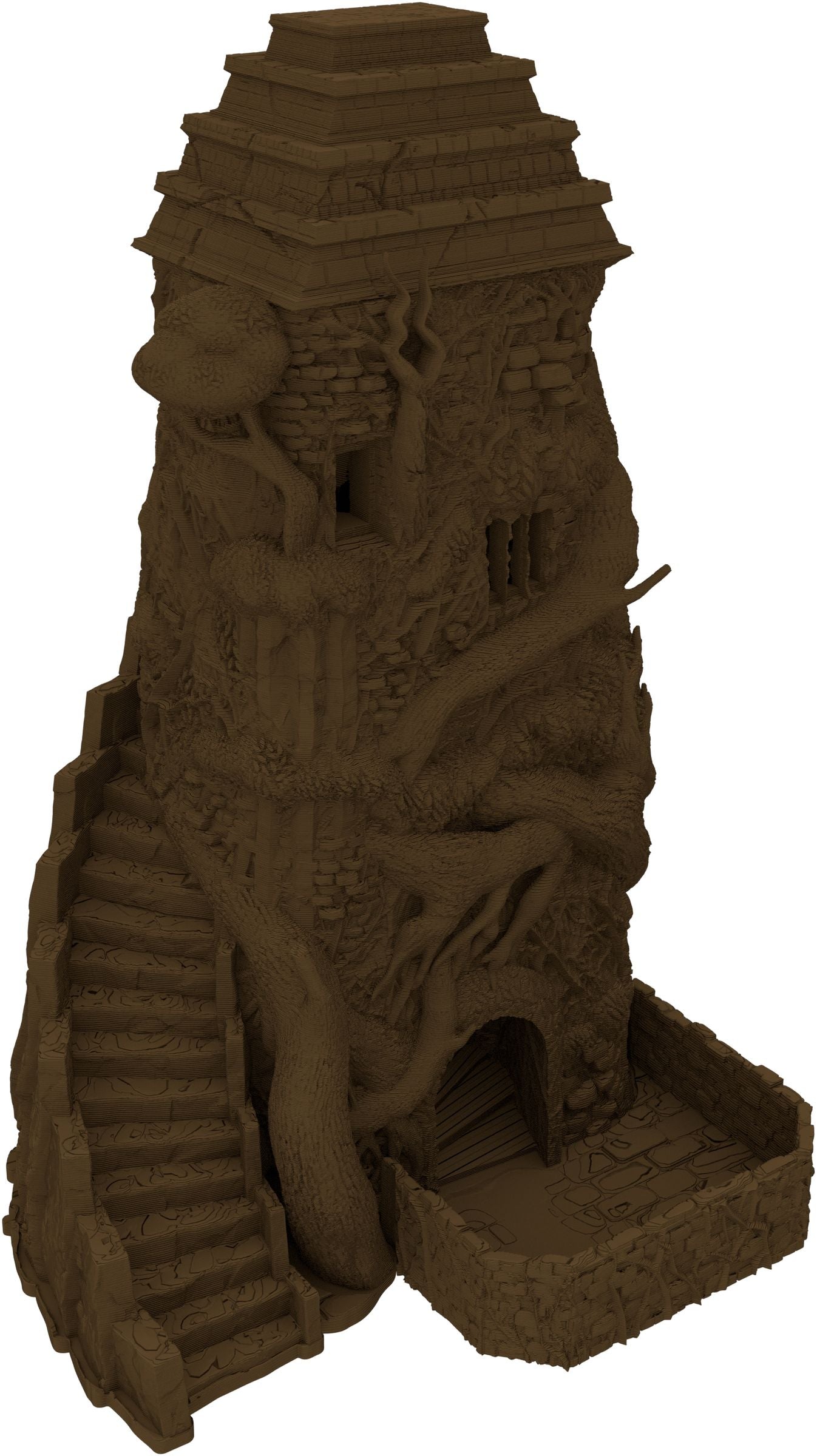 3D printed, detailed dice tower, with removable roof and exchangeable dice tray. The Dice Tower can also be used as a terrain part for your miniatures game or as a center piece for your next DnD session.