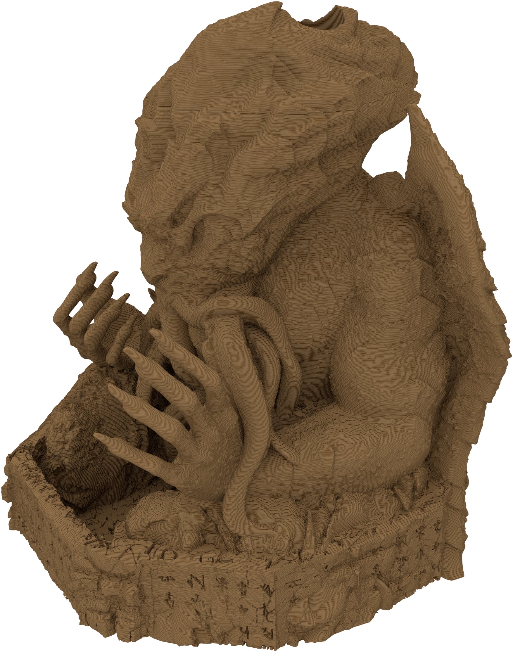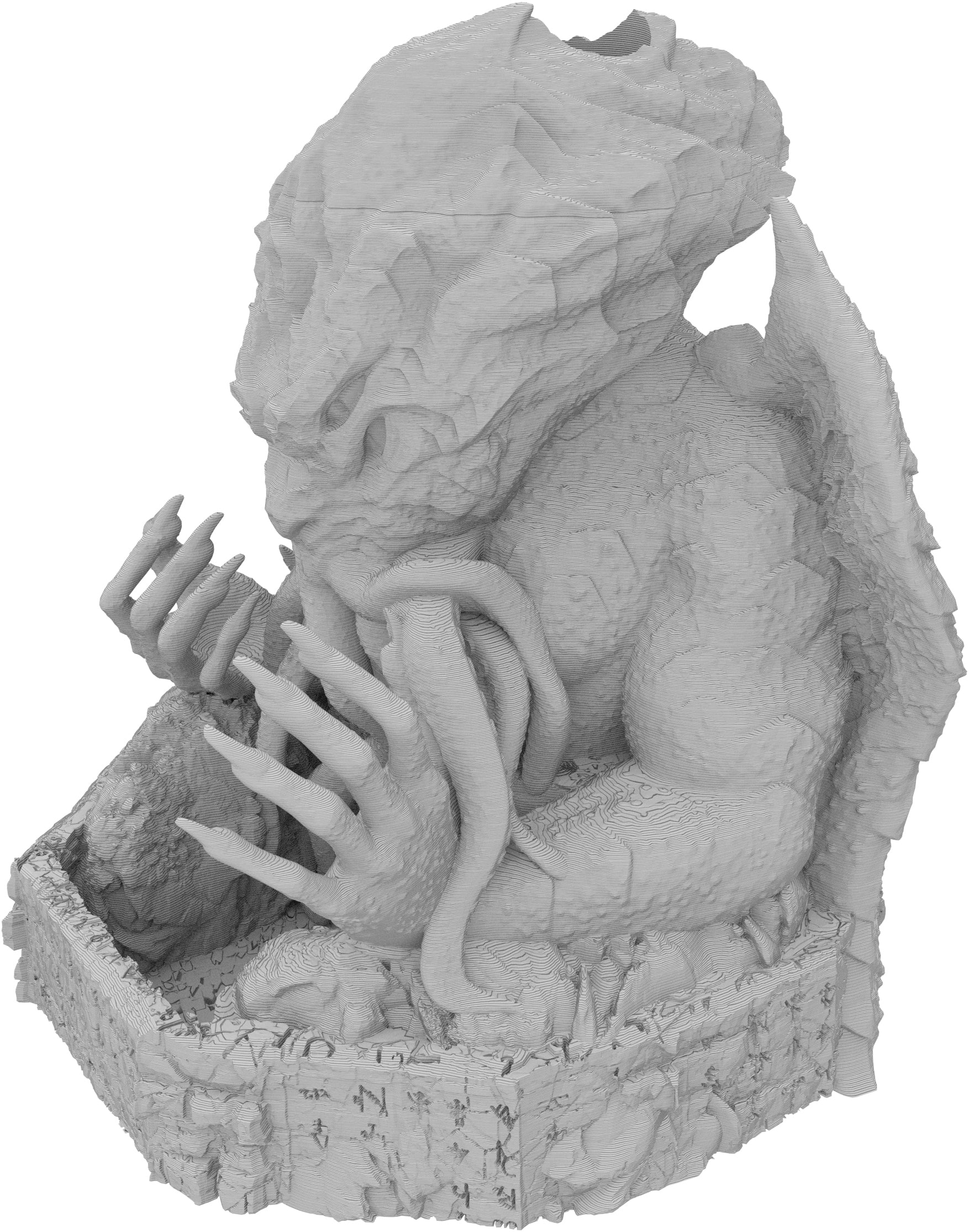 3D printed - detailed dice tower, with removable roof and exchangeable dice tray. The Dice Tower can also be used as a terrain part for your miniatures game or as a center piece for your next DnD session.