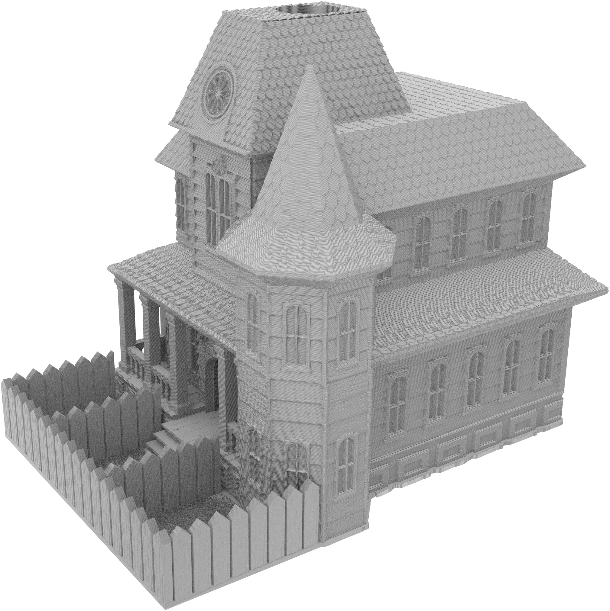 3D printed - detailed dice tower, with removable roof and exchangeable dice tray. The Dice Tower can also be used as a terrain part for your miniatures game or as a center piece for your next DnD session.