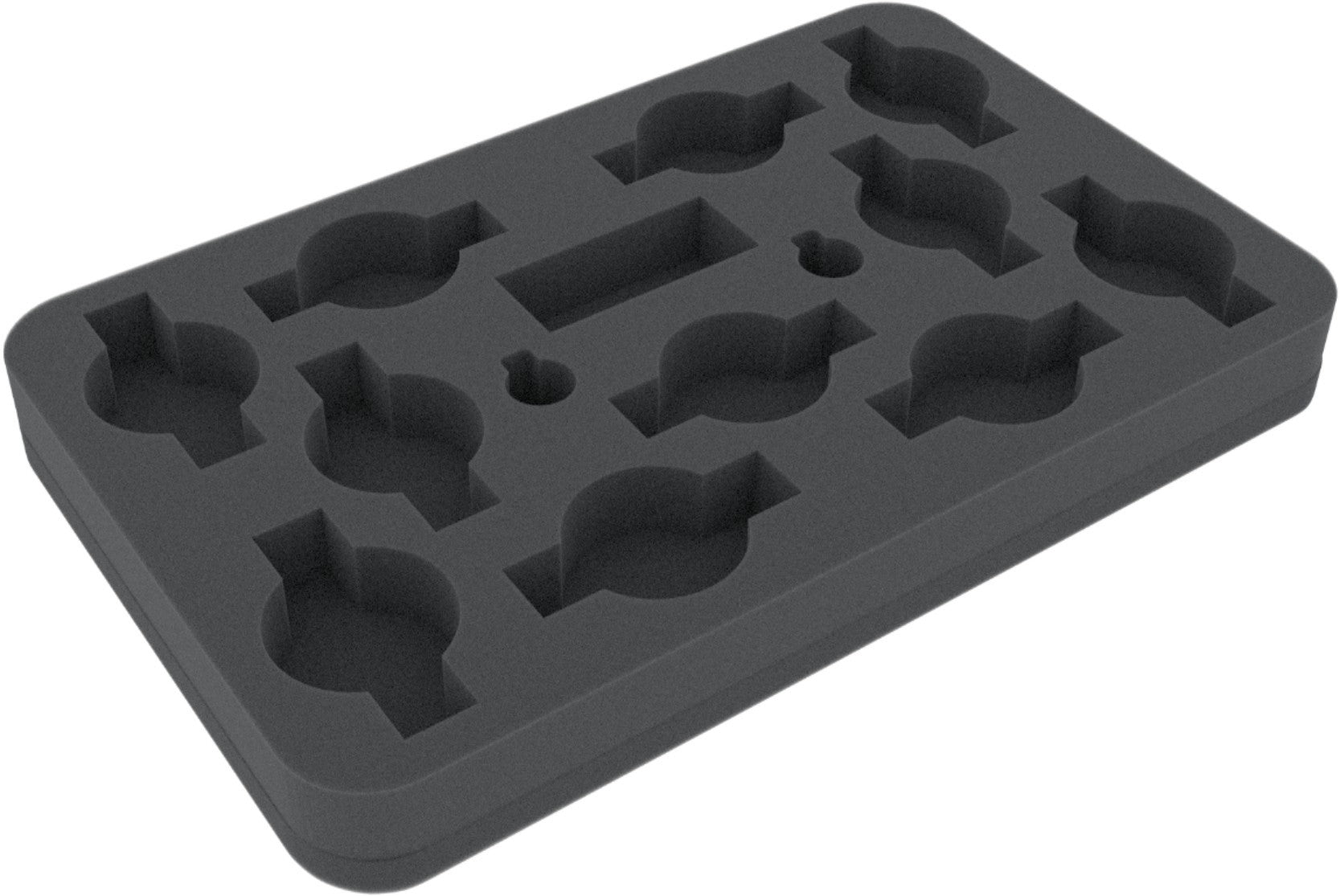 La bandeja de espuma de medio tamaño Feldherr (HS) tiene las dimensiones: 275 mm x 172 mm x 30 mm de altura. La profundidad de 30 mm de la espuma es el resultado de una base de espuma de 10 mm y una bandeja de espuma de ranura con 20 mm de profundidad efectiva.