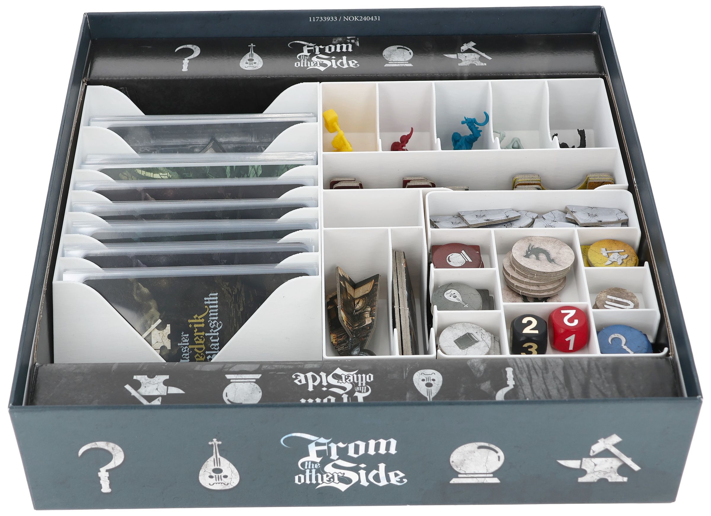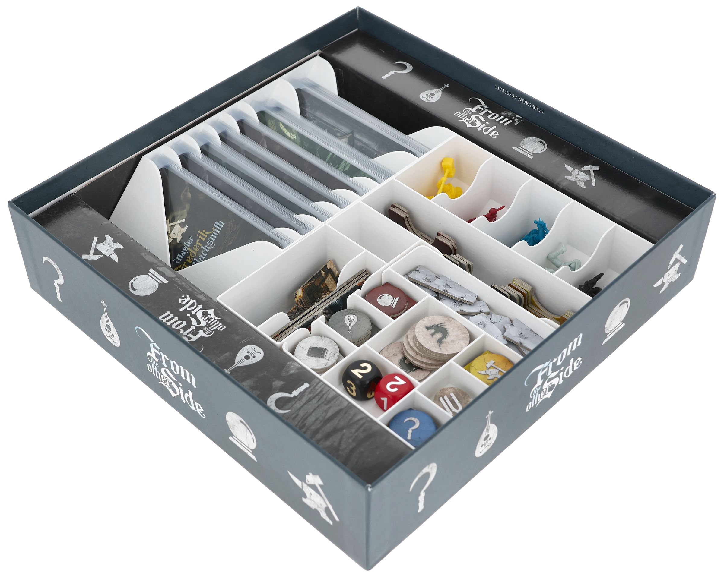 - The Organizer is made of sturdy plastic and fits perfectly into the original board game box from From The Other Side (Organizer dimensions: 285 x 206 x 51 mm).