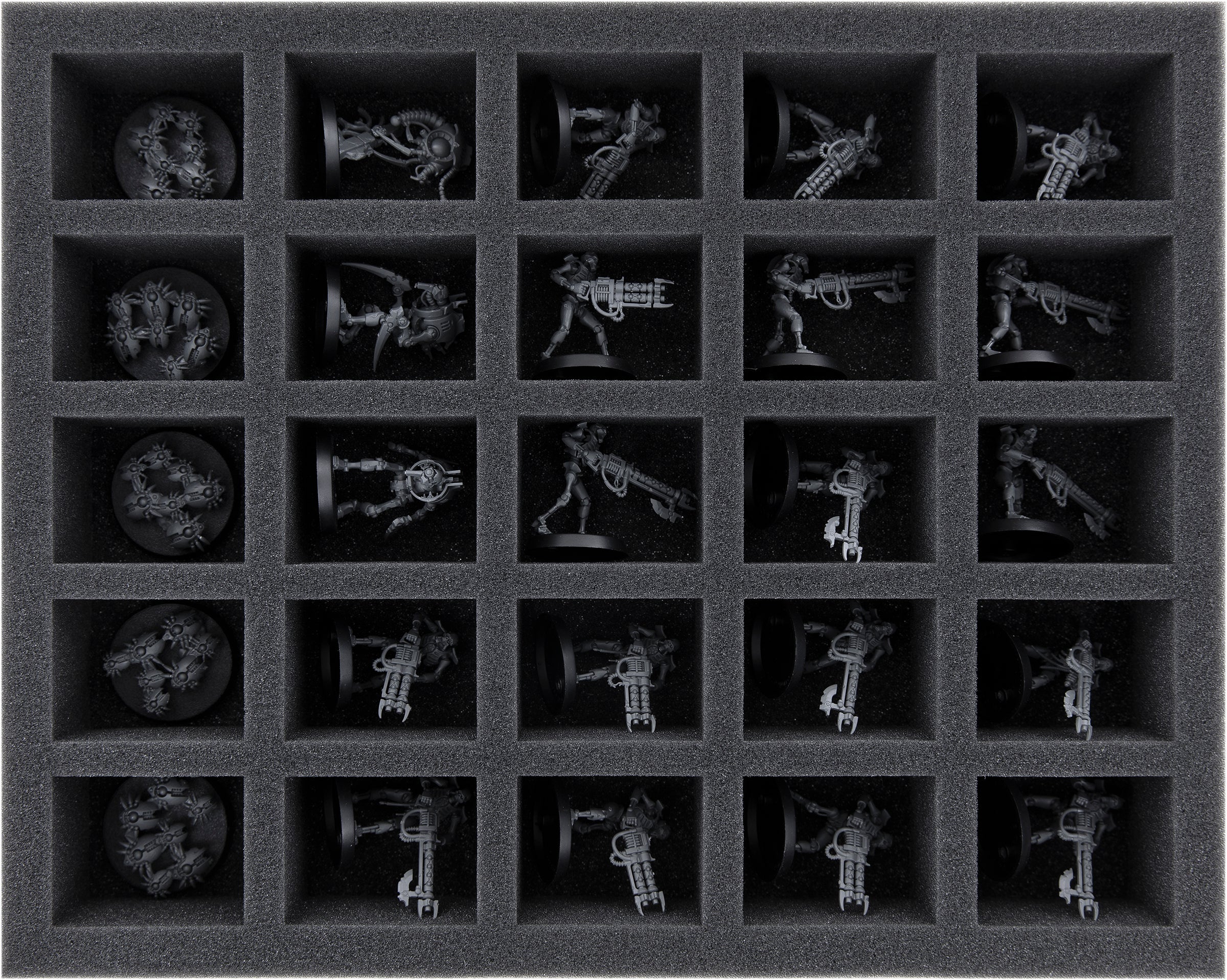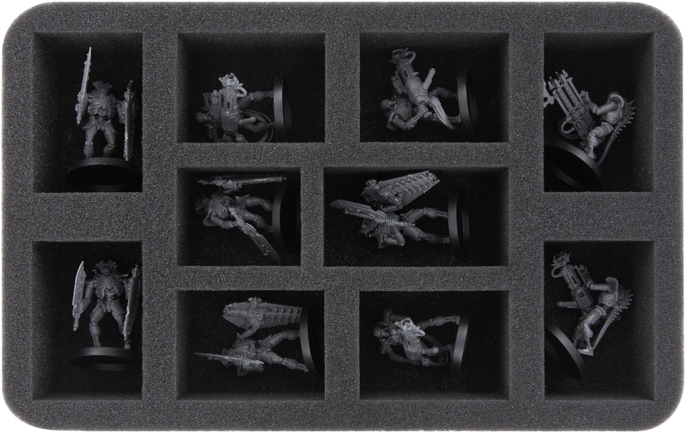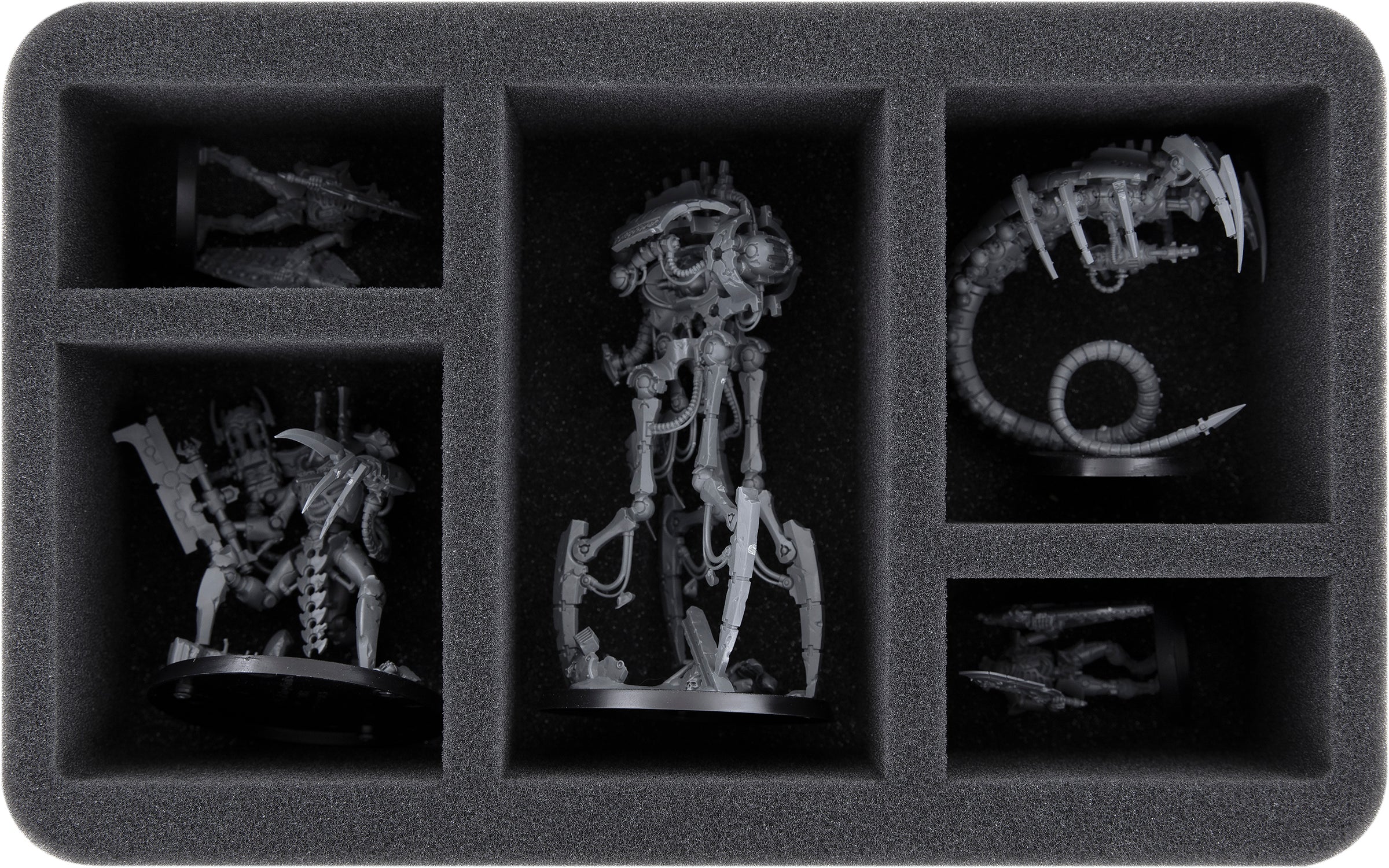 Para asegurarnos de que tus tropas Xenos estén siempre listas para la destrucción de los Cruzados Imperiales, hemos llenado esta caja con las bandejas de espuma apropiadas para proteger tus miniaturas de Necron.