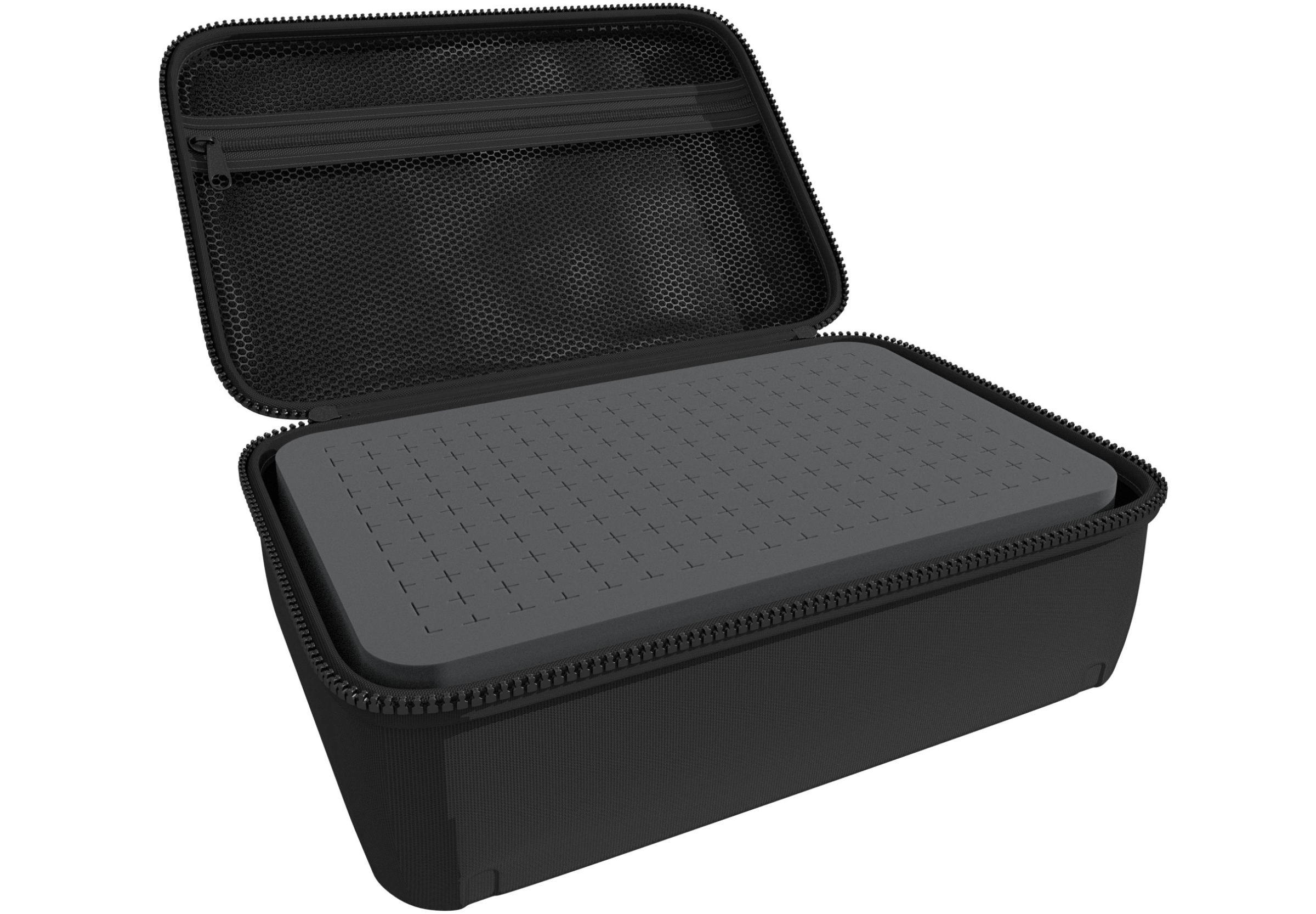 La HS Case 90 está hecha de EVA duradera y aún así ligera. La cubierta de poliéster negro y la forma manejable proporcionan un acabado elegante y el contenido está protegido de forma óptima de las influencias externas. Un bolsillo interior con cremallera ofrece espacio adicional para hojas, material de escritura y otras piezas pequeñas.