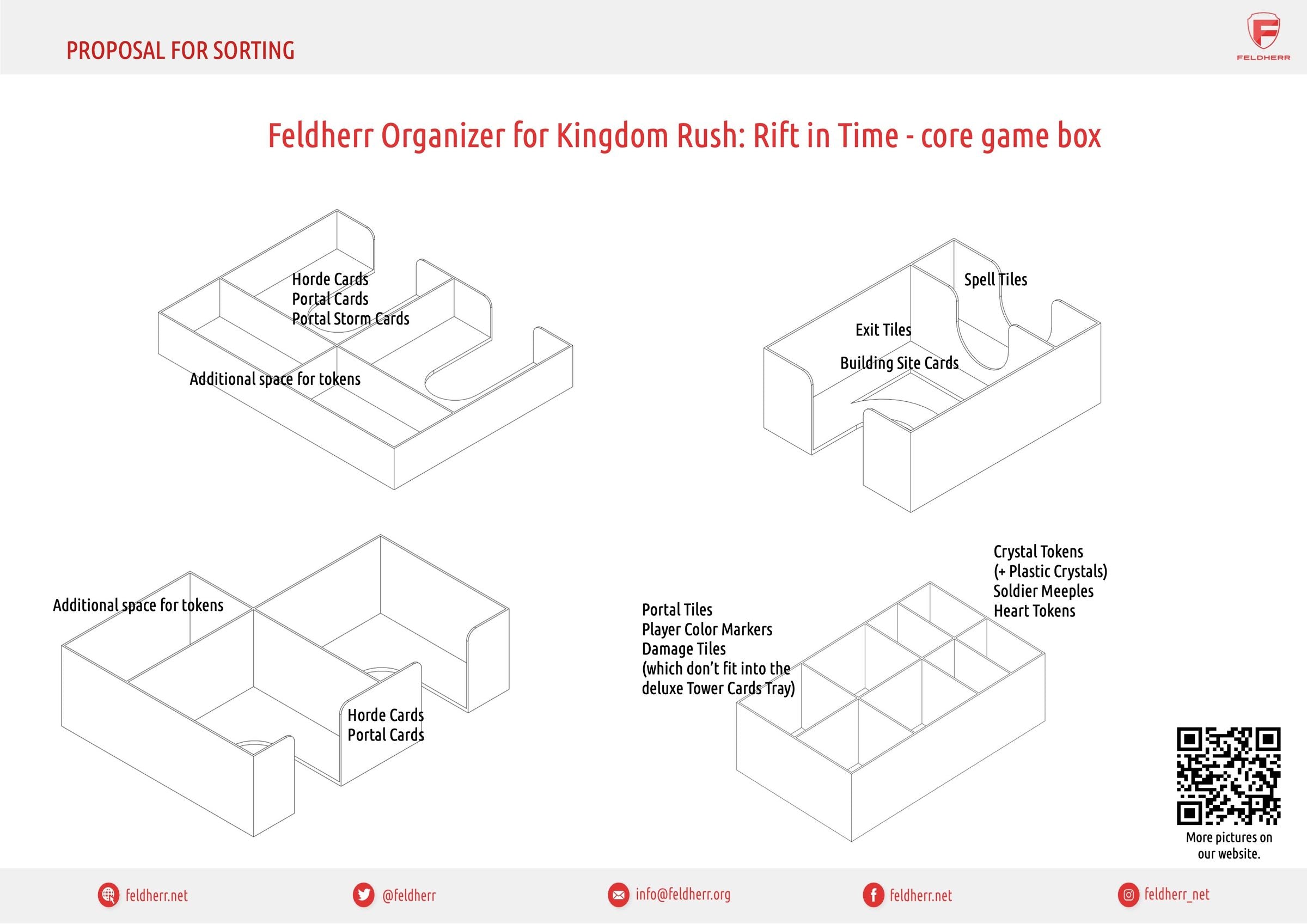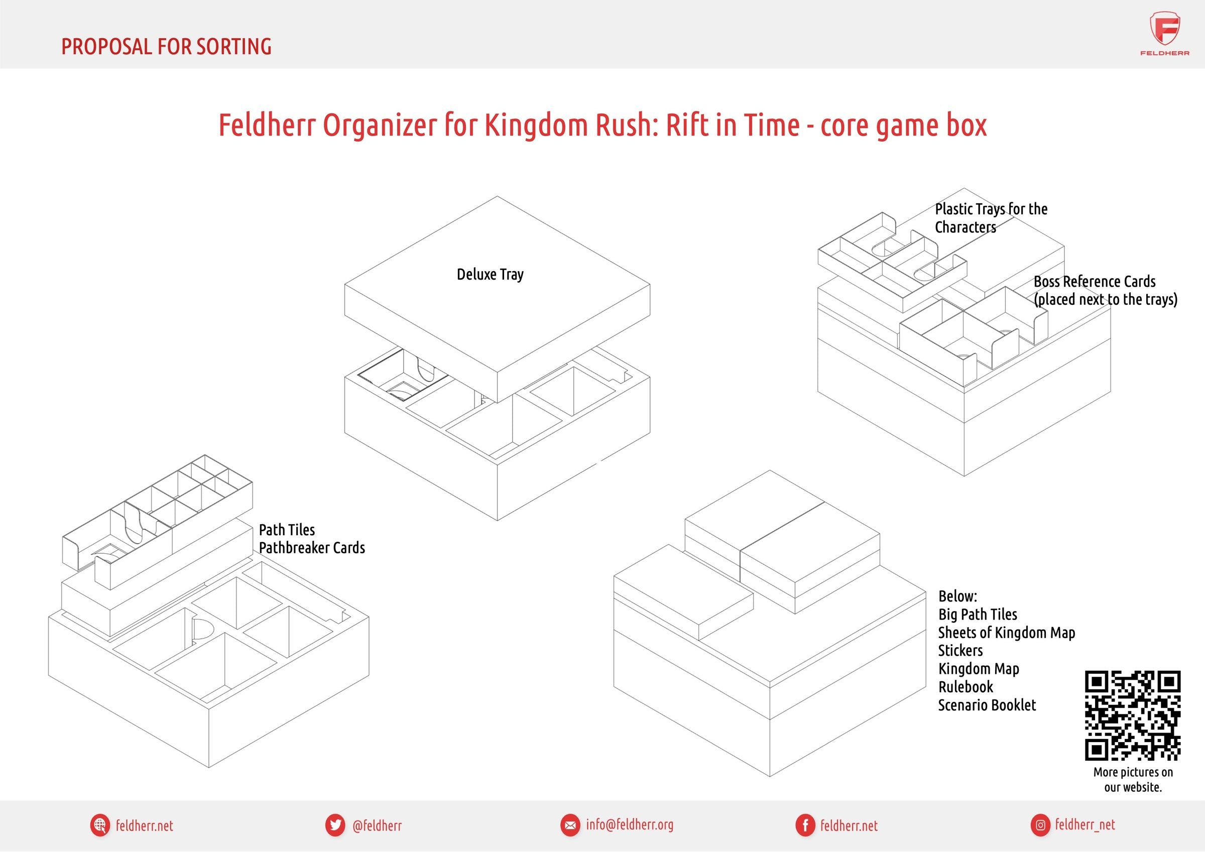 • The Organizer fits into the original “Kingdom Rush: Rift in Time” core game box.