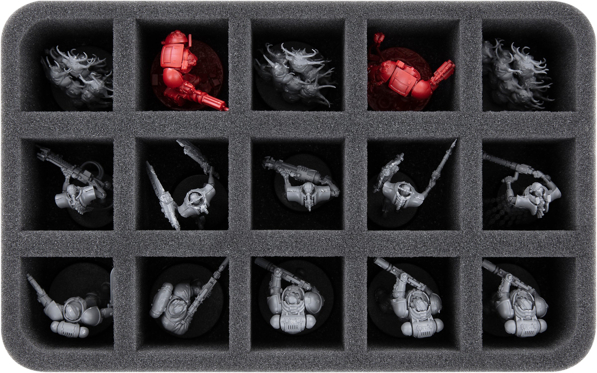 - 1 bandeja de espuma Full-Size para 1 Teniente Primaris, 10 Intercesores Primaris, 5 Reivers / Hounds of Morkai + otras 6 miniaturas de infantería estándar (FSMEZZ050BO)