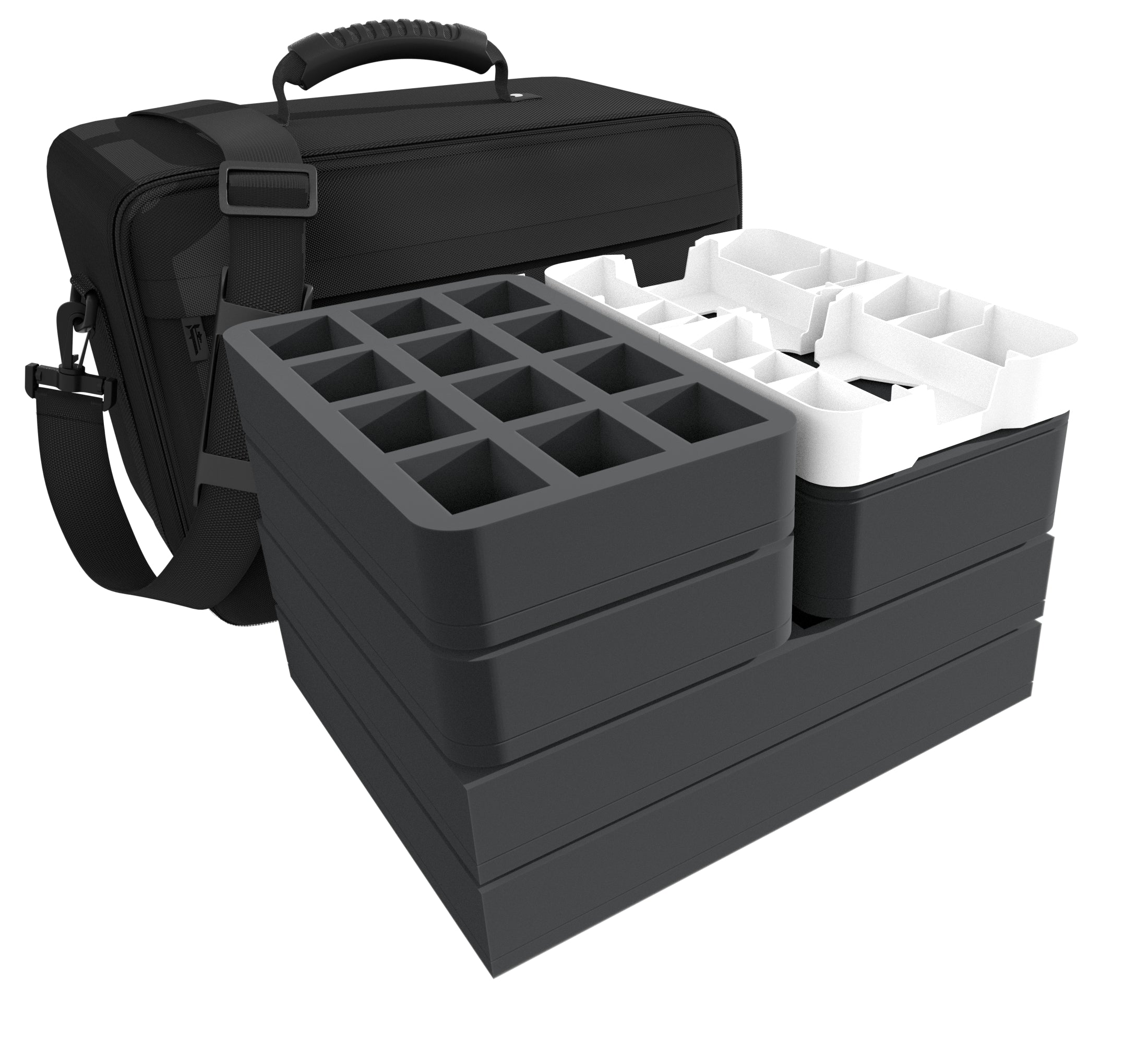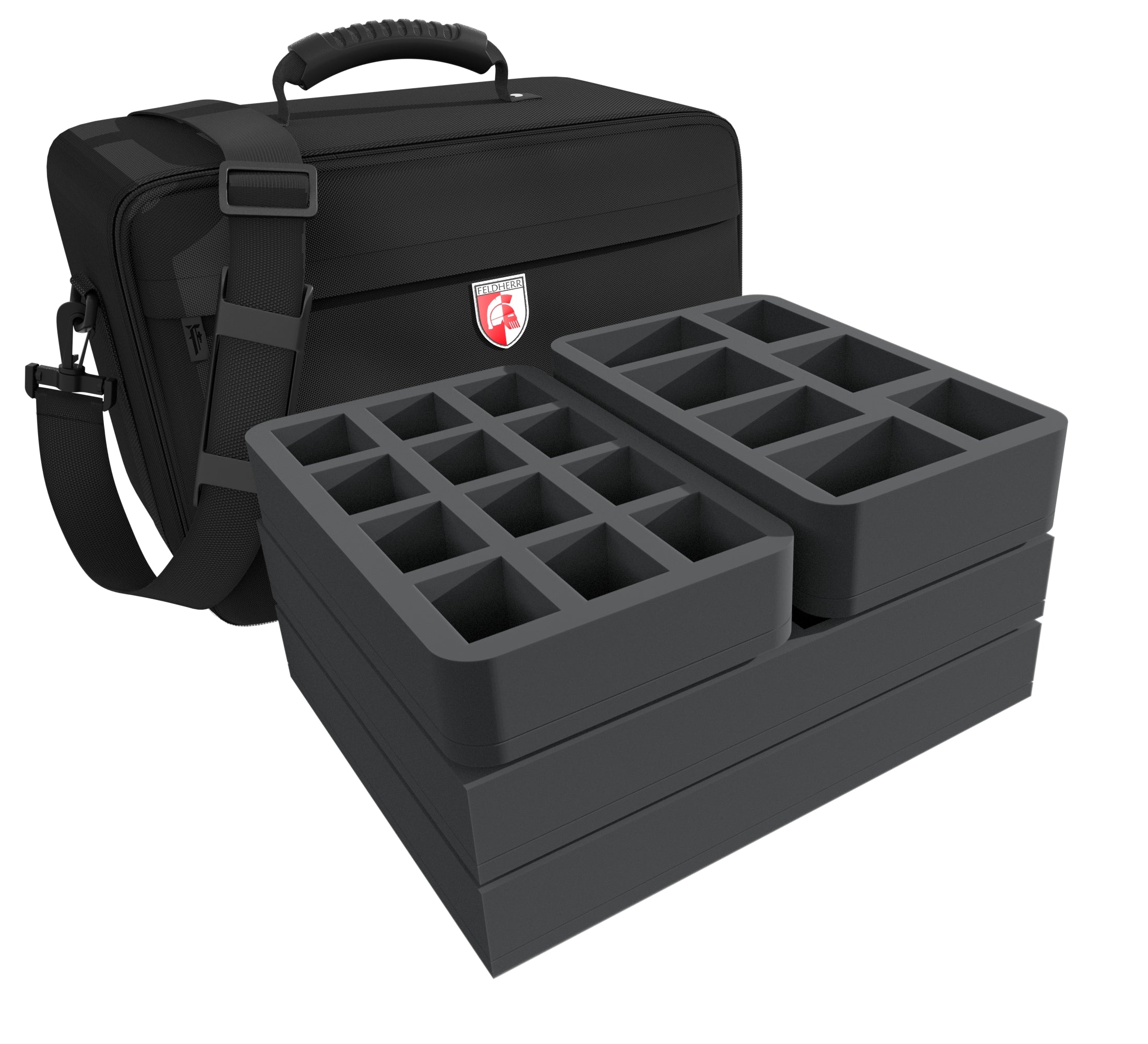 Este bolsa MAXI PLUS, repleto de Feldherr bandeja de espuma a juego y bandejas de fichas de plástico, puede albergar hasta 75 modelos de guerreros y el correspondiente material de juego de Star Wars: Shatterpoint.