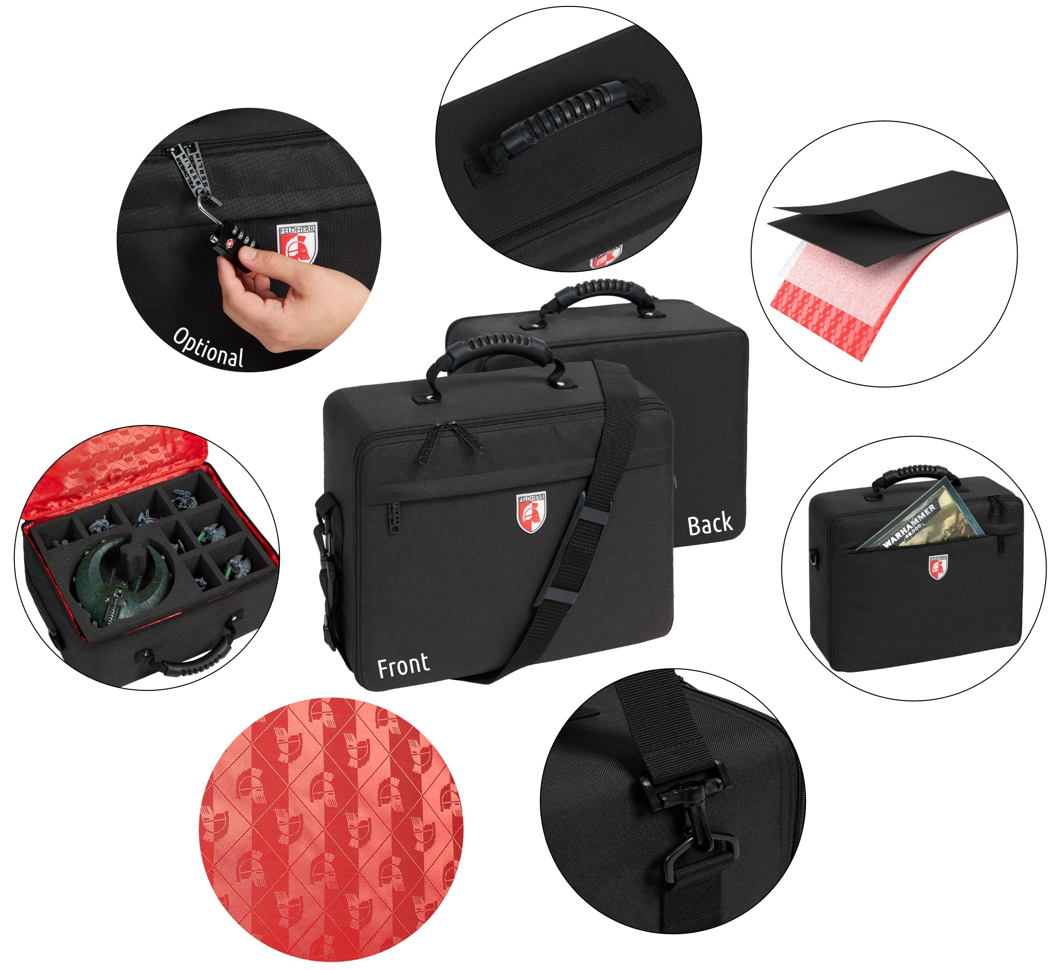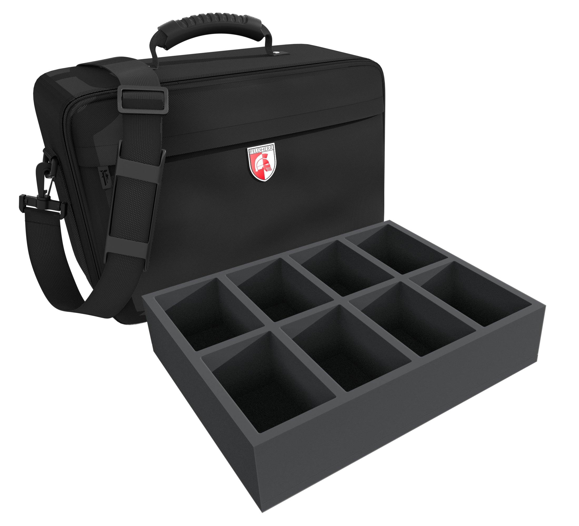 Para tener éxito en el reino de Terrinoth, sus miniaturas deben entrar en el campo de batalla en la mejor forma posible. El bolso Feldherr MAXI con la espuma a juego te permite clasificar y transportar tus miniaturas de forma sensata y segura hasta la siguiente noche de juego.