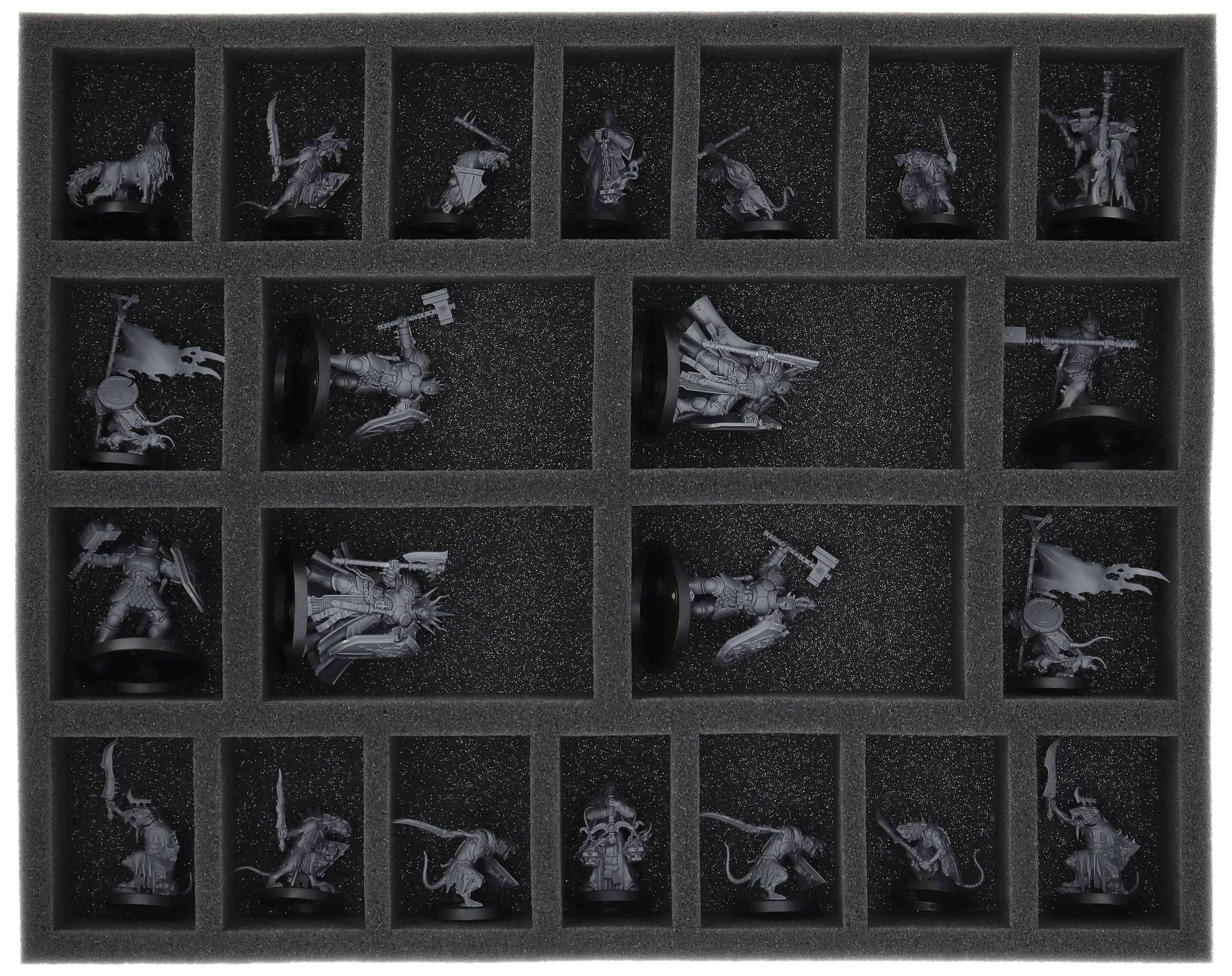 • 1 bandeja de espuma de tamaño normal con 22 compartimentos para miniaturas como los Clanrats y modelos de tamaño similar (FS050A124)