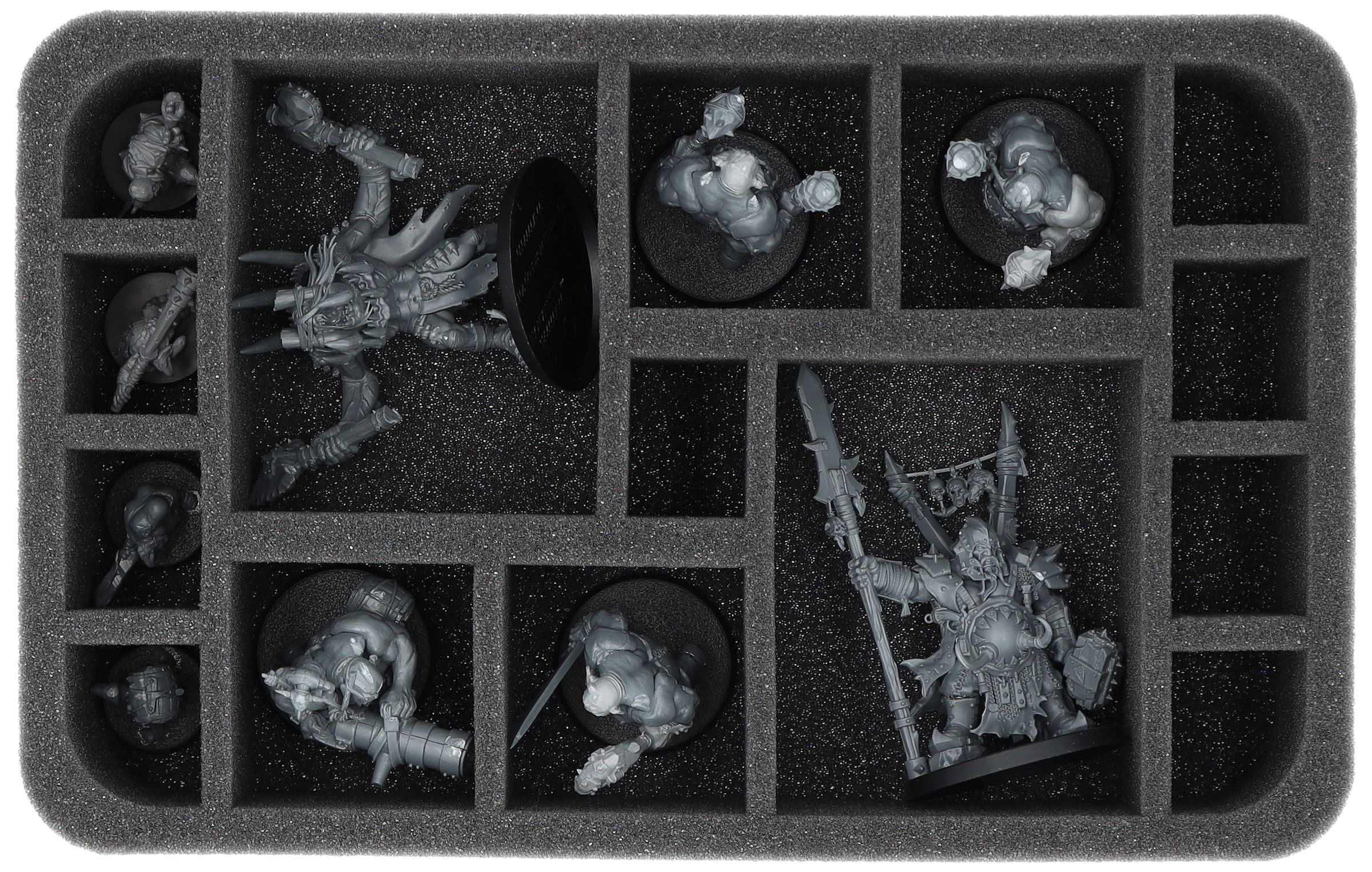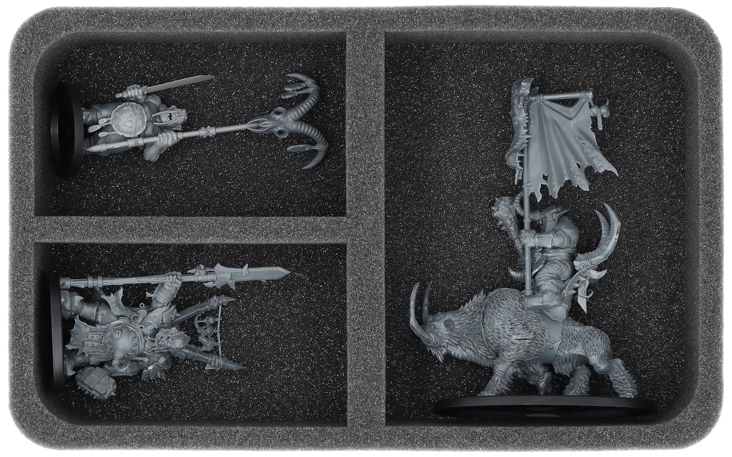 - 1 x FS090A008 - Bandeja de espuma de tamaño completo con 4 compartimentos para, por ejemplo, Ironblaster, Gnoblar Scraplauncher, Mournfang Riders