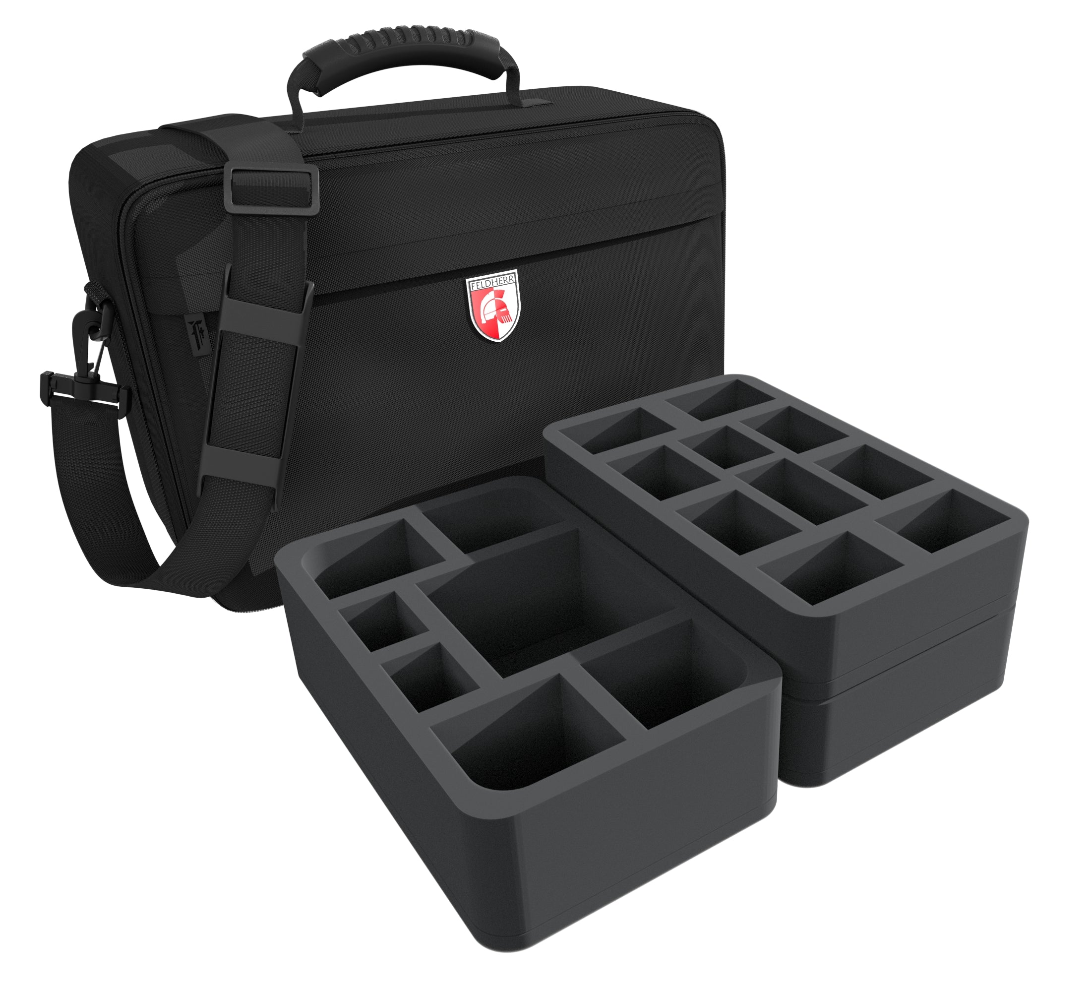 Para garantizar el transporte seguro de tus figuras, hemos incluido 5 Half-Size espuma en el bolsa. Cada modelo tiene su propio compartimento.El corte a medida evita que las figuras se deslicen durante el transporte.El espuma de alta calidad protege de forma fiable los detalles más finos, como las armas o las extremidades, para que no sufran daños.Sus figuras pintadas también estarán a salvo de arañazos y de la antiestética abrasión del color gracias al suave espuma.
