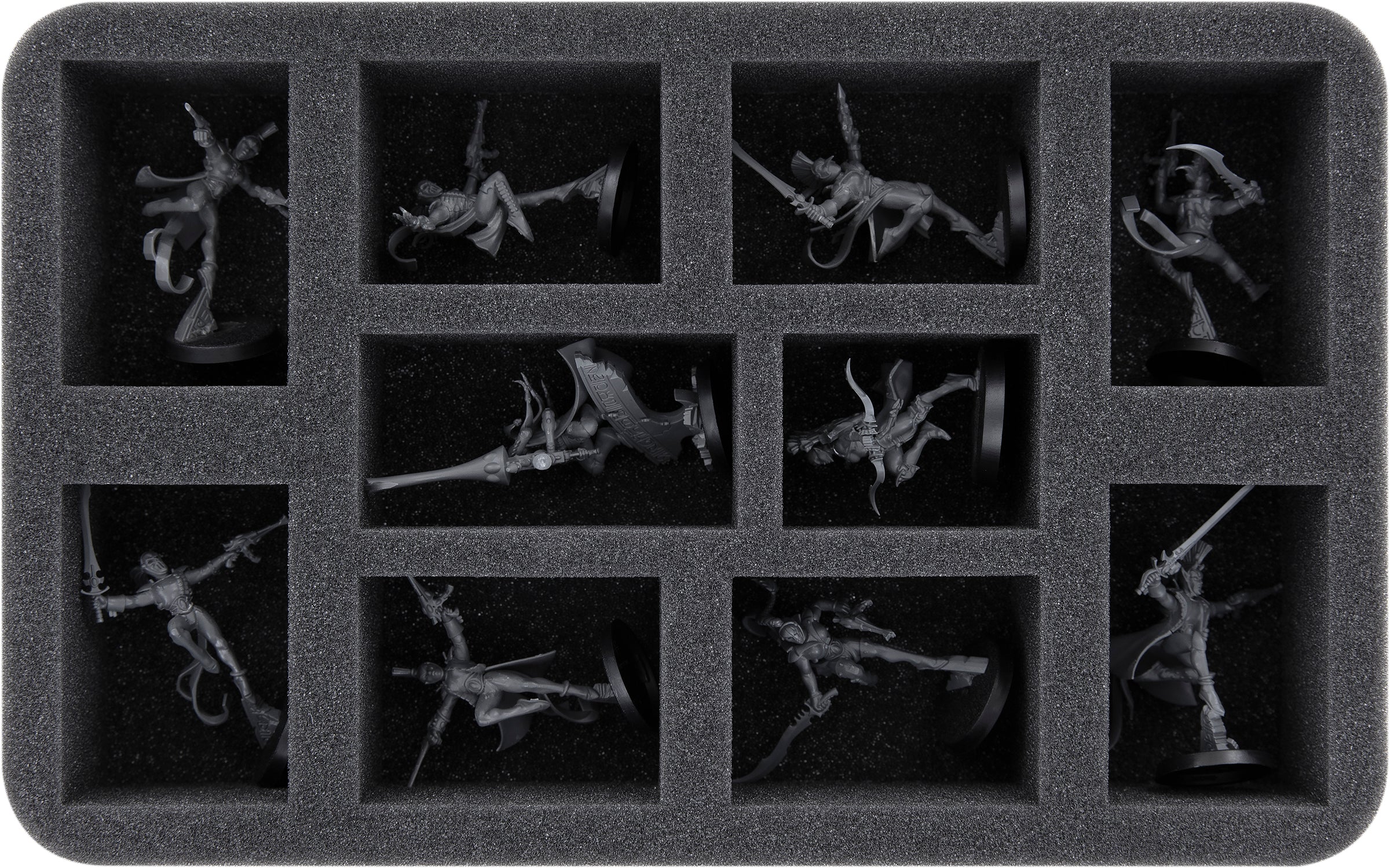 - 1 Half-Size bandeja de espumas con 10 compartimentos para miniaturas voluminosos como Shadowseer, Death Jester, Solitaire, Harlequin Troupe y modelos con dimensiones similares (HS045A029)