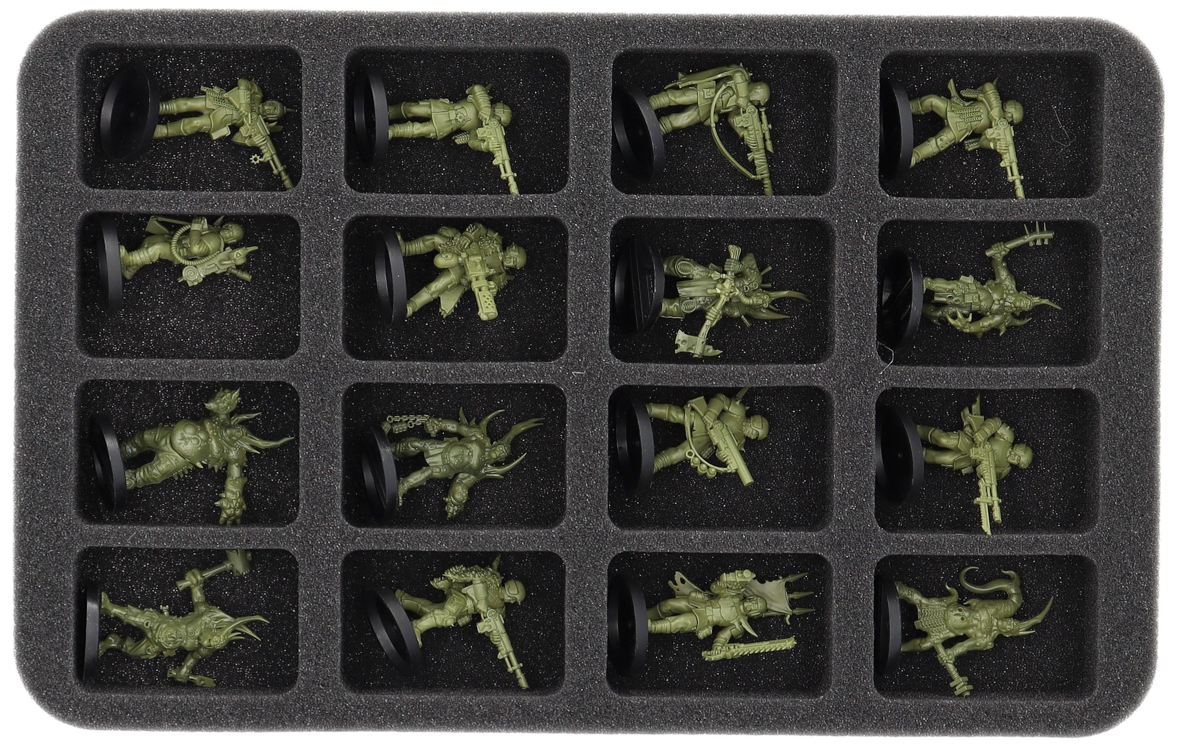 - 1 bandeja de espuma de tamaño medio con 16 compartimentos para miniaturas como Caminantes de la viruela, Guardias traidores y miniaturas de tamaño similar (HS035BF05BO)