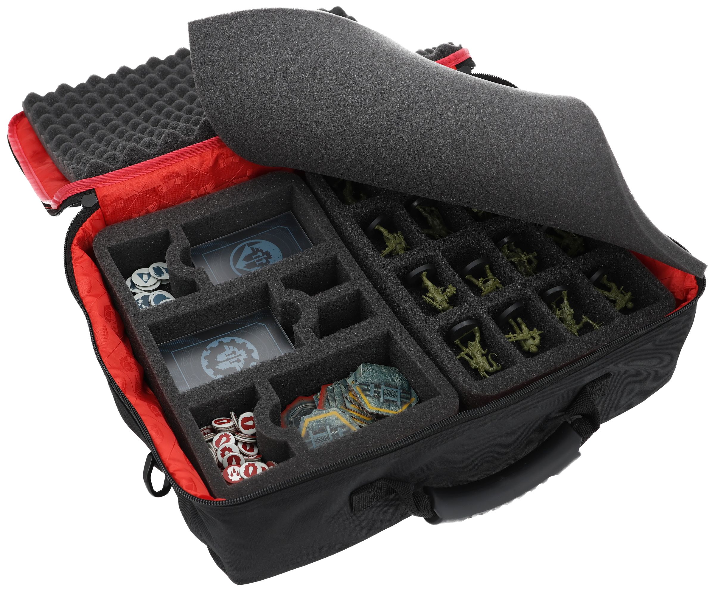 Los compartimentos a medida protegen de forma fiable tus miniaturas de posibles daños. La suave espuma garantiza que incluso tus unidades pintadas lleguen a la mesa de juego sin arañazos ni desconchones de pintura.