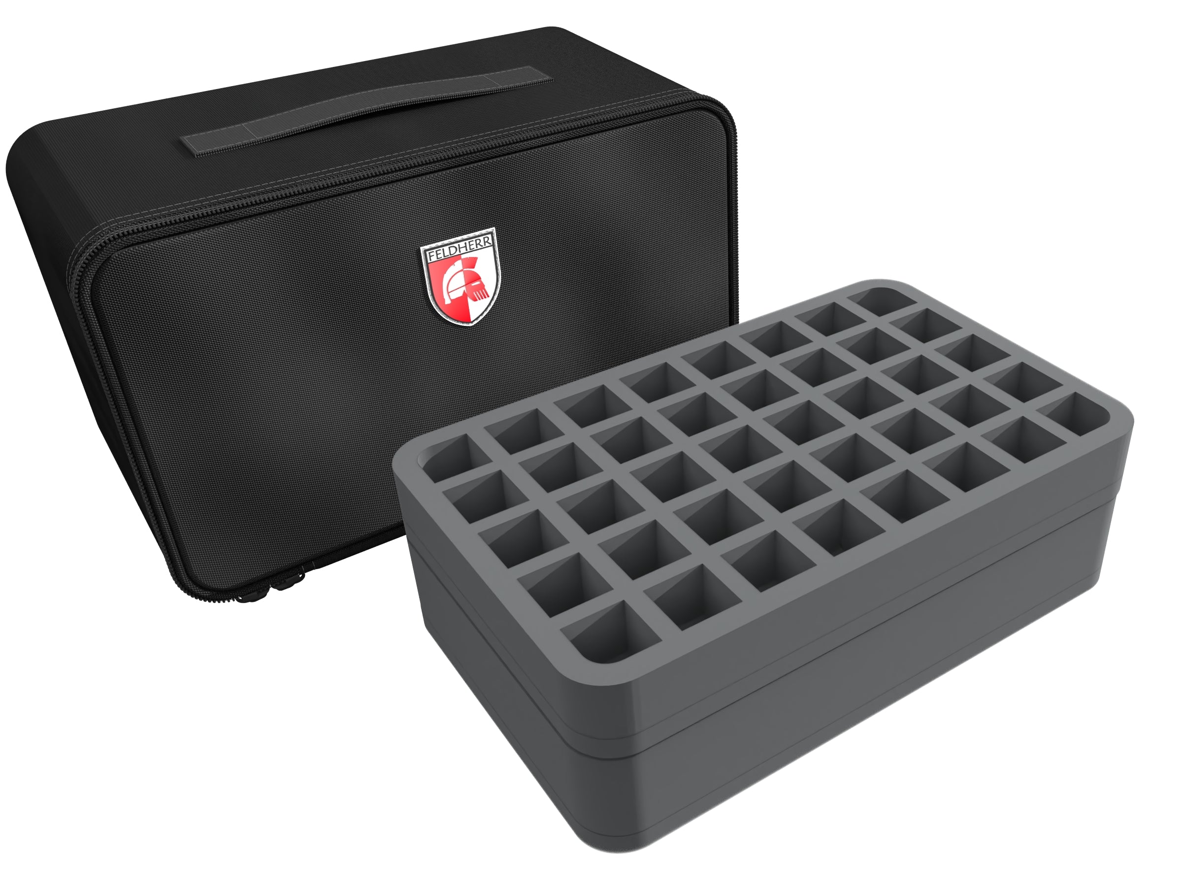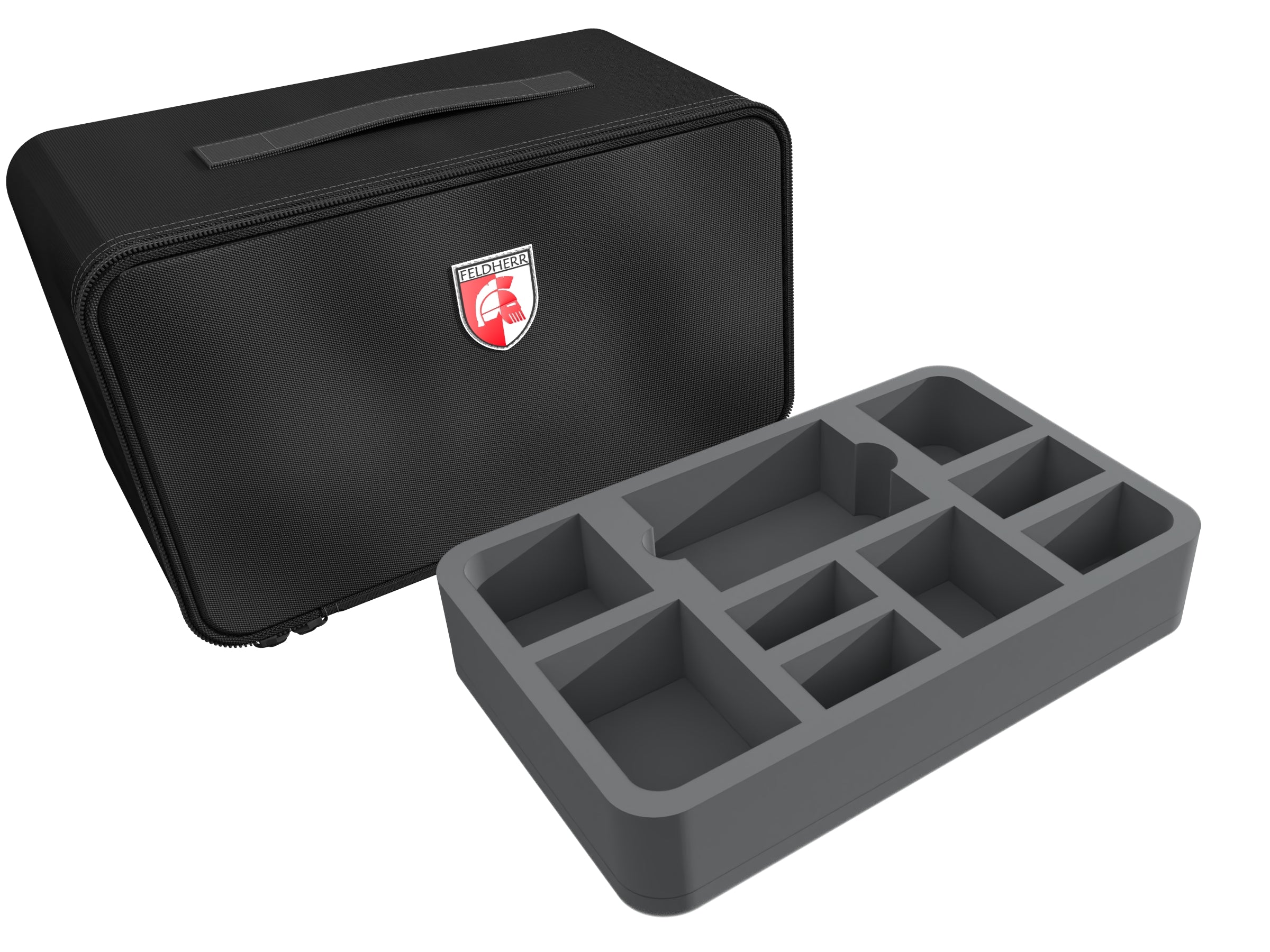 En este compacto MINI PLUS bolsa tus miniaturas estarán óptimamente protegidos. Puedes transportar con seguridad hasta 61 figuras de guerreros al campo de batalla en los Feldherr bandeja de espuma personalizados.