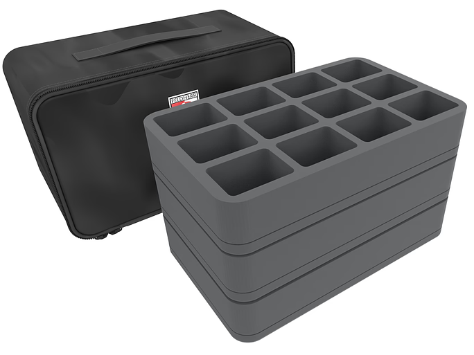 We packed 3 Feldherr foam trays into the bag for the numerous models. Custom-fit cut compartments of soft foam reliably protect your miniatures from damage and ensure they arrive at the tabletop undamaged. Once you have painted your figures, you can be sure that the soft foam will preserve the colors of your models and prevent the paint from chipping.