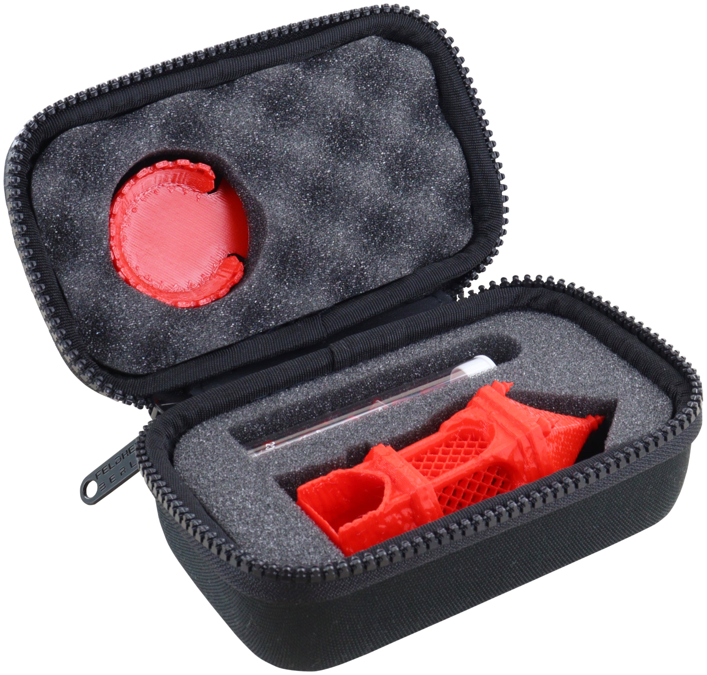 La MINIMUM Case está fabricada en EVA duradera pero agradablemente ligera.La cubierta de poliéster negro y la forma manejable proporcionan un acabado elegante y el contenido está protegido de forma óptima contra las influencias externas.