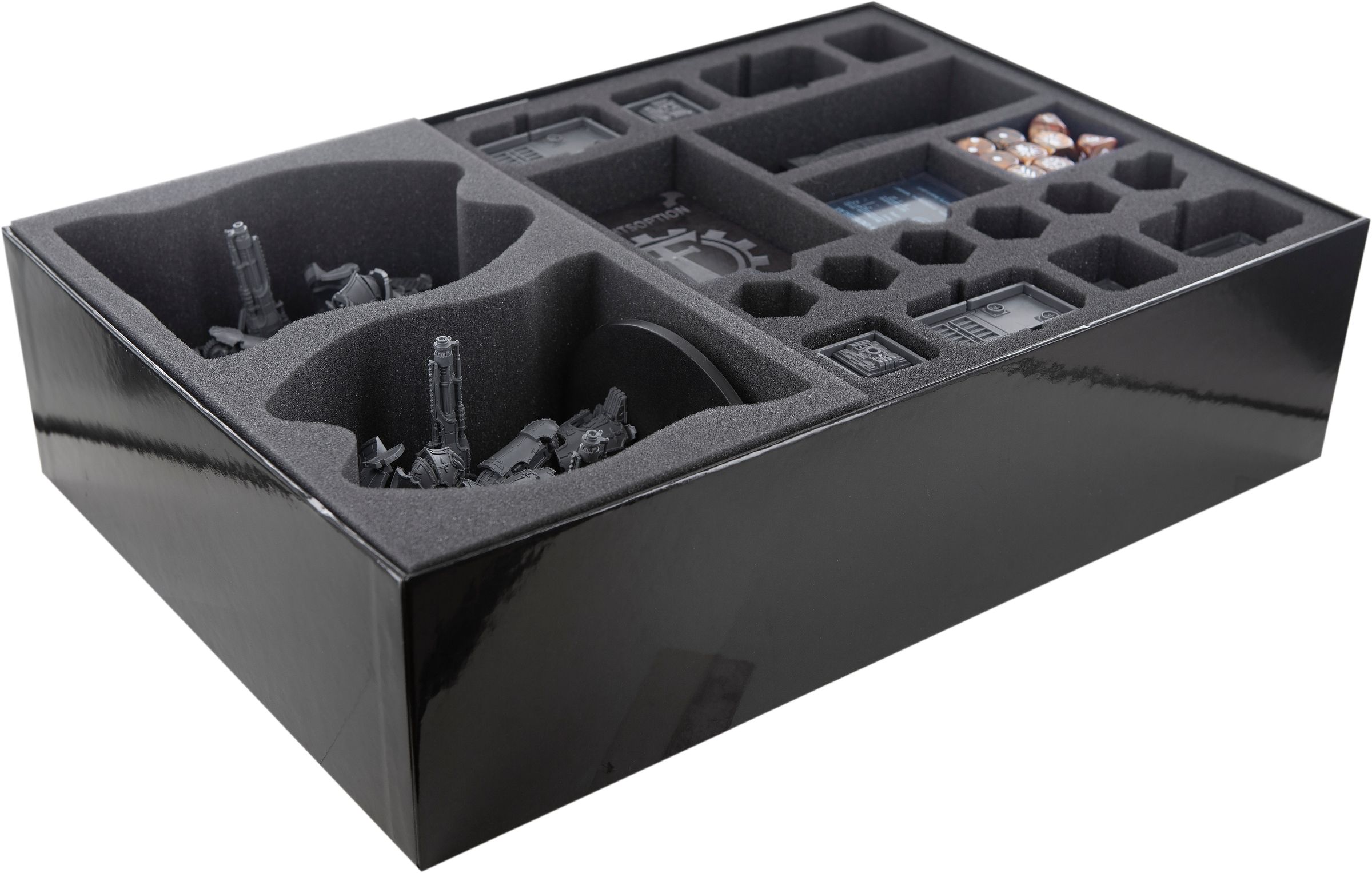 Tres inserciones de espuma protegen sus miniaturas y mantienen la caja Titan organizada.