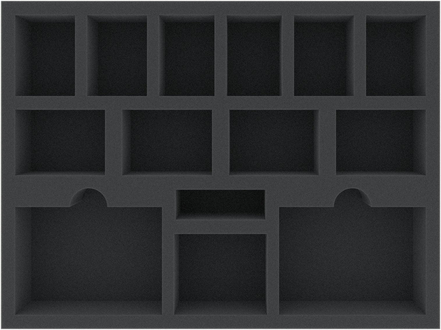 Con nuestro juego de bandejas de espuma Feldherr para los originales Warhammer Underworlds: Shadespire core box, sus miniaturas se acolchan suavemente. El juego consiste en una bandeja de espuma que encaja perfectamente en la caja original del juego. Con el topper de espuma a juego incluido, las miniaturas están protegidas de arriba a abajo. Sólo utilizamos como material espuma sin color, sin cloro y sin ácido.