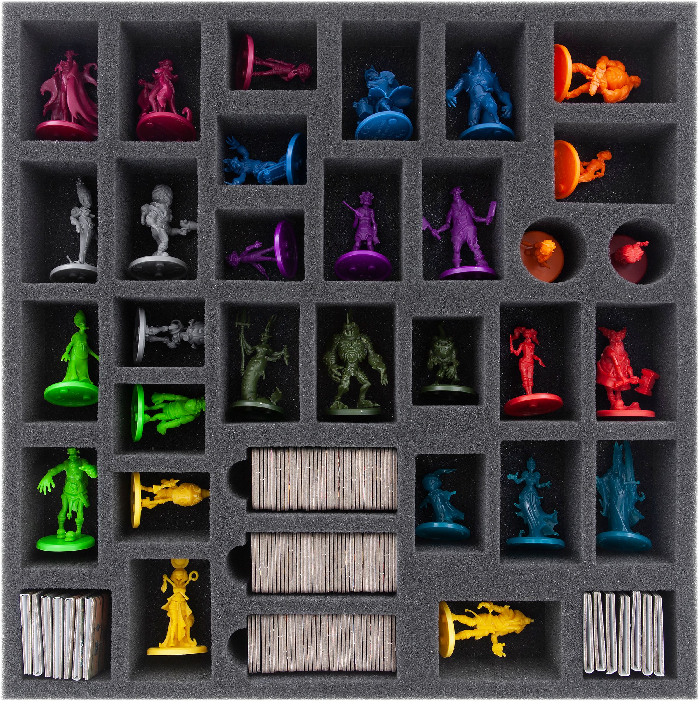 Por la presente, todas las miniaturas están alojadas de forma segura. Con el topper de espuma a juego se asegura de que las figuras del inserto superior también estén protegidas en todo su contorno.