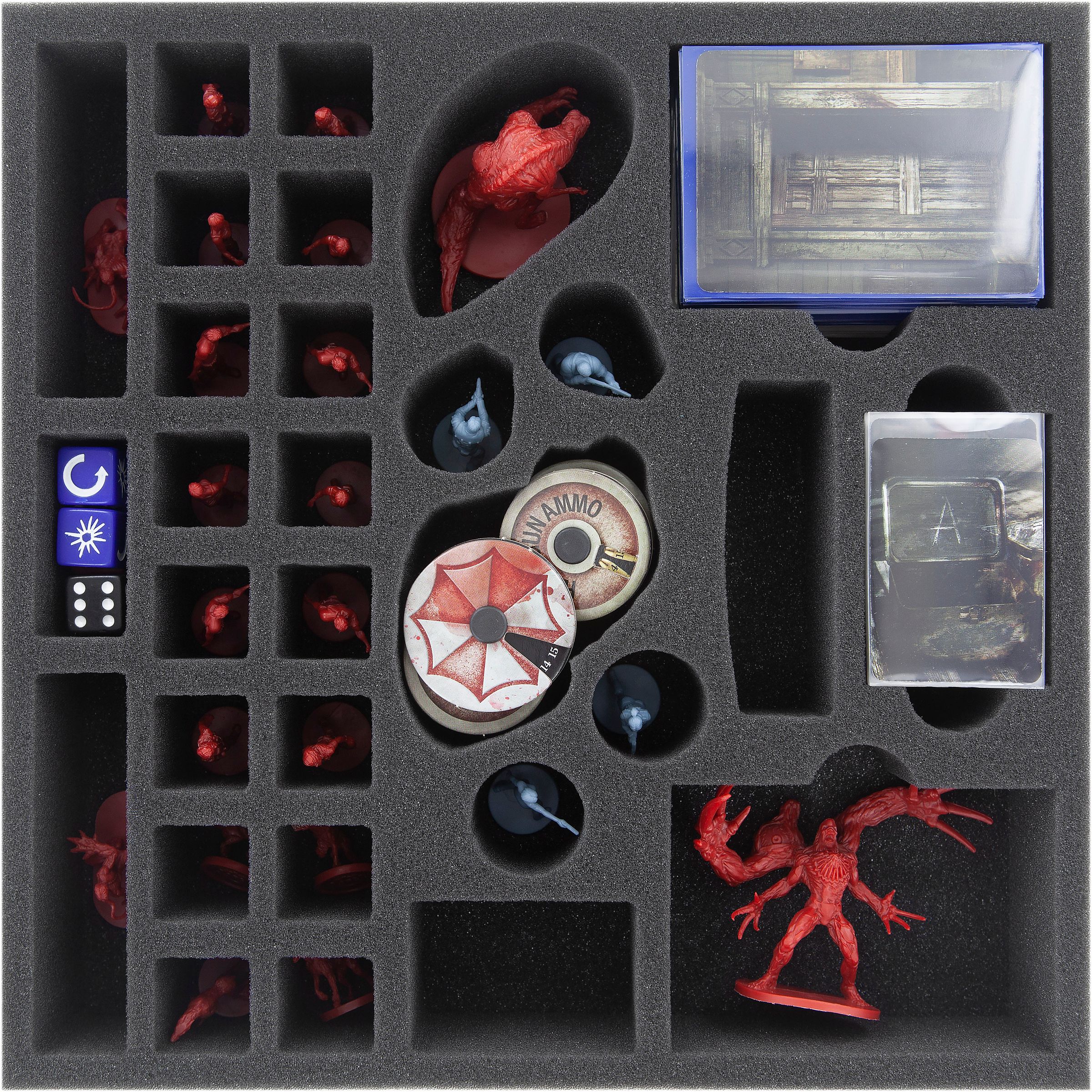 La lucha por la supervivencia en Raccoon City ya es bastante agotadora. Para que no tengas que preocuparte por el bienestar de tus miniaturas y tengas más tiempo para buscar la siniestra verdad, tenemos el set de espuma adecuado para tu caja de juego de mesa'Resident Evil 2'.
