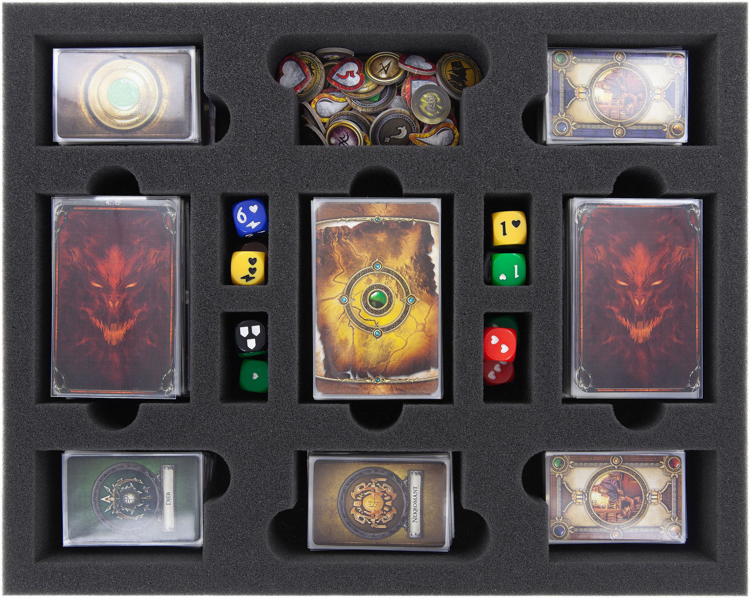 • 1 bandeja de espuma Full-Size con 13 compartimentos para tarjetas, fichas y dados (FSLG050BO)