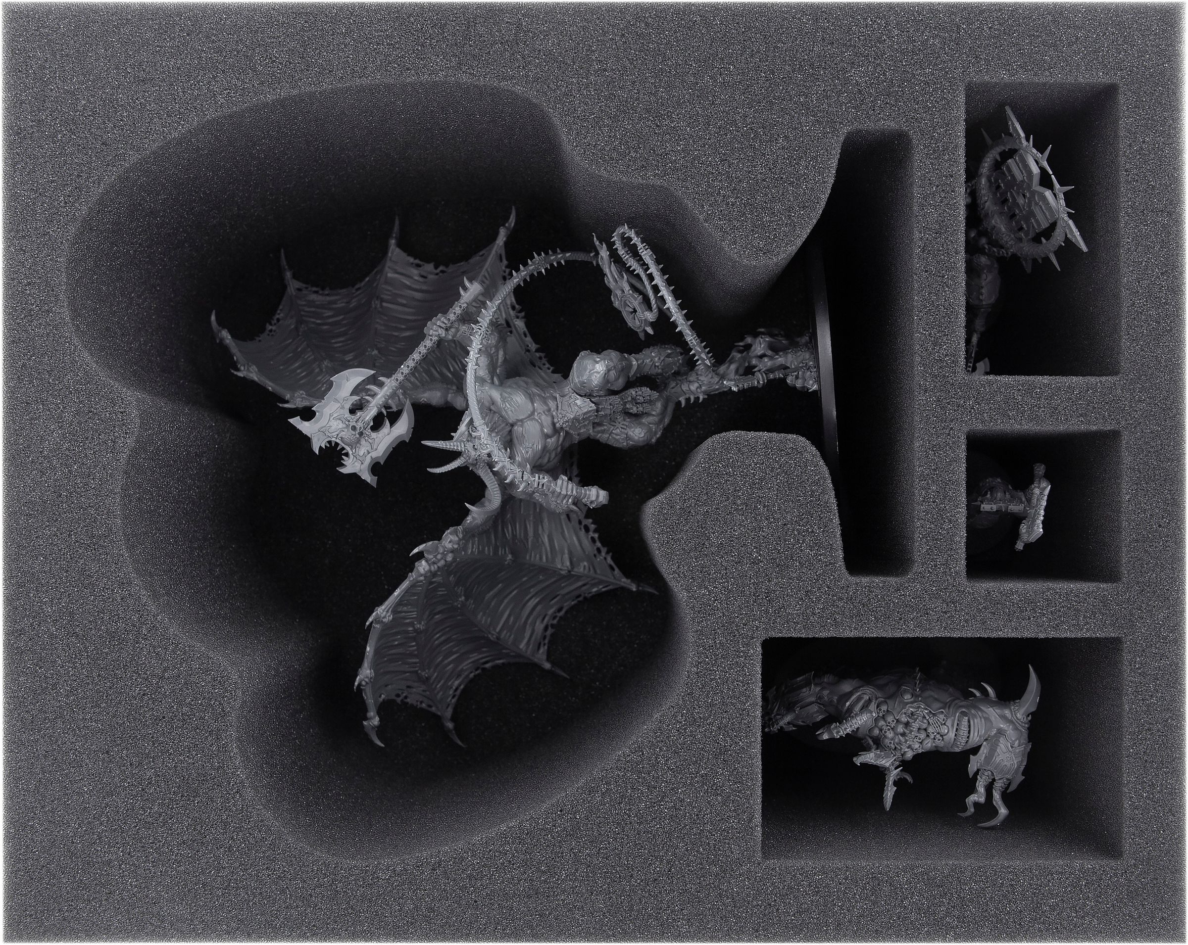 Junto al Greater Daemon, 3 compartimentos adicionales ofrecen espacio para miniaturas adicionales de su elección. Son especialmente adecuados para modelos de guerreros de Khornes Bloodbound, como Mighty Lord of Khorne, Bloodsecrator y Khorgorath.