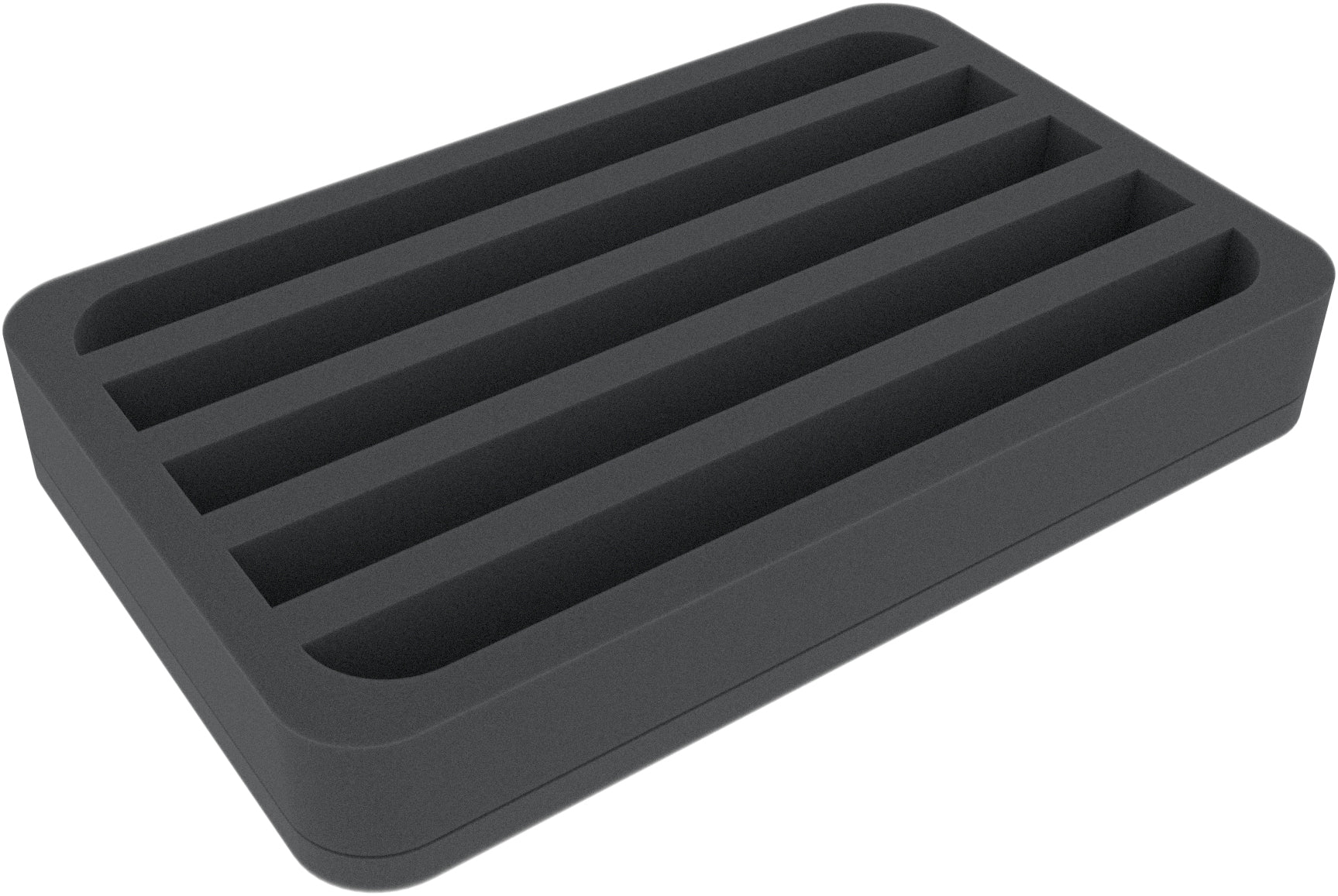 Esta bandeja de espuma Half-Size está dividida en 5 compartimentos alargados. Esto lo hace ideal para almacenar barricadas de calle e insertos de obstáculos para llamas de guerra de forma segura y ordenada.