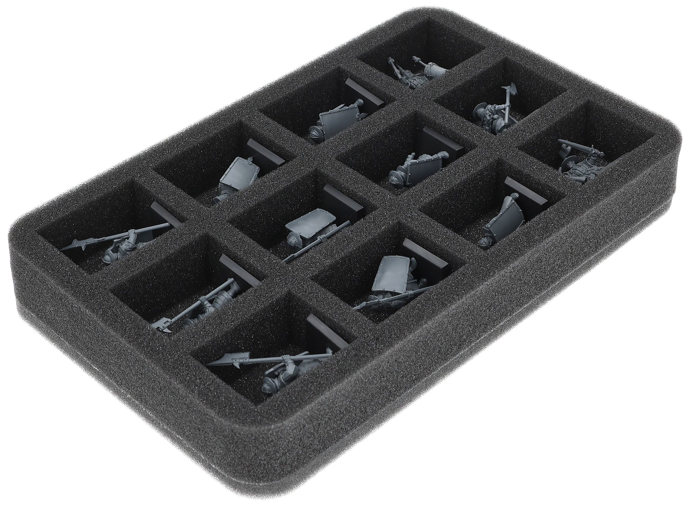 En este Feldherr bandeja de espuma tienes espacio para hasta 12 miniaturas de tu ejército. El inserto es especialmente adecuado para almacenar infantería y modelos de tamaño similar.