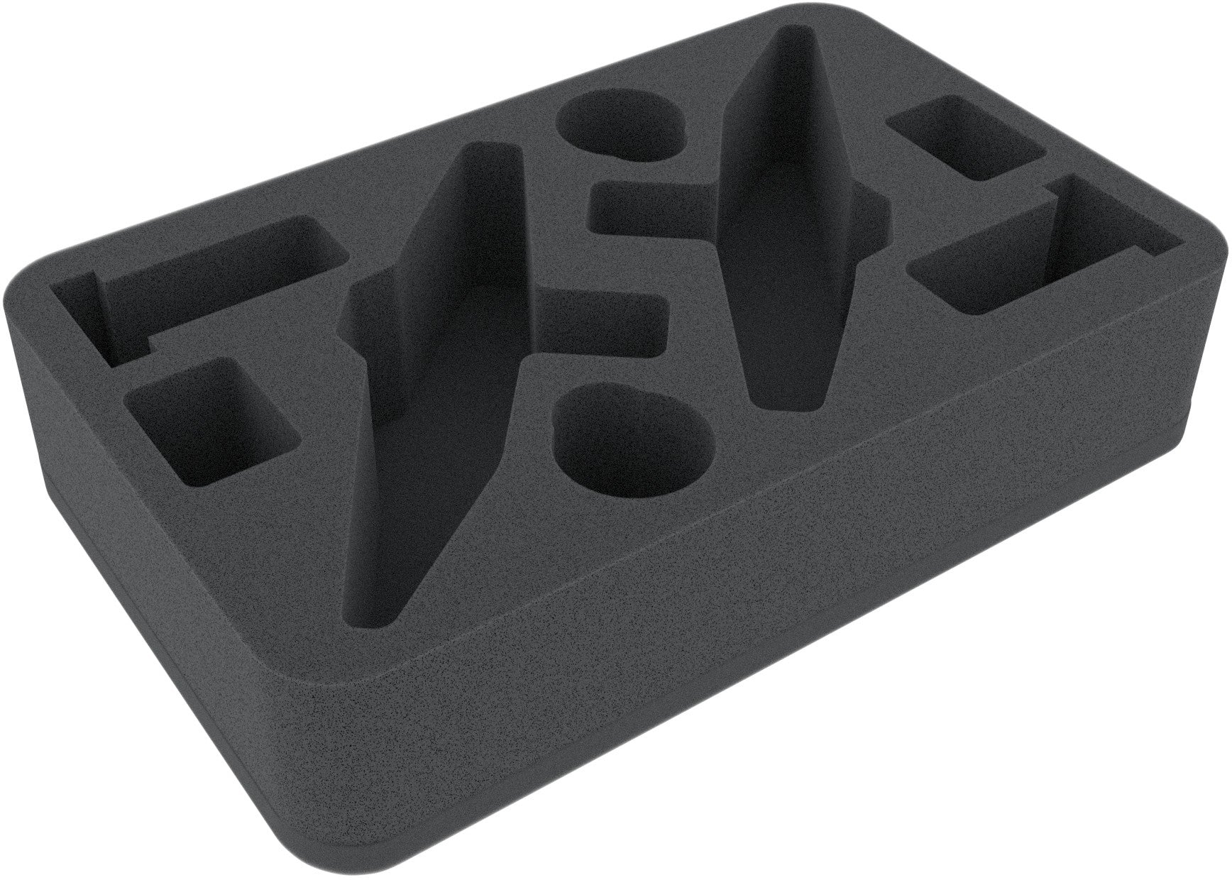 La bandeja de espuma de medio tamaño Feldherr (HS) tiene las dimensiones: 275 mm x 172 mm x 60 mm de altura. La profundidad de 60 mm de la espuma es el resultado de una base de espuma de 10 mm y una bandeja de espuma de ranura con 50 mm profundidad efectiva