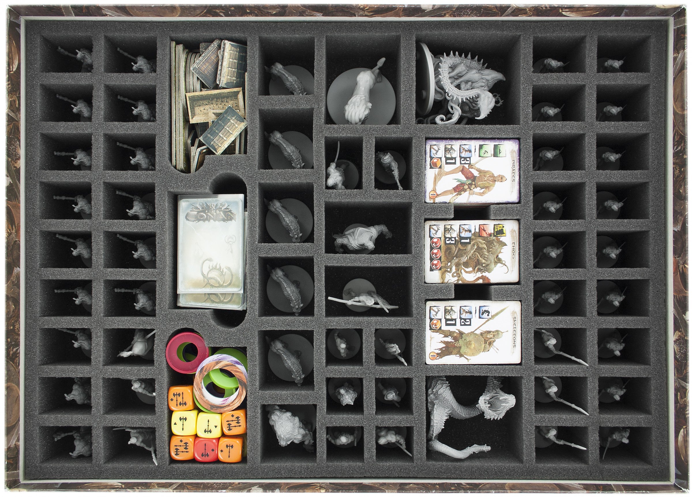 Valor de la bandeja de espuma establecido para Conan Kickstarter Barbarian y King Pledge y todas las metas de estiramiento