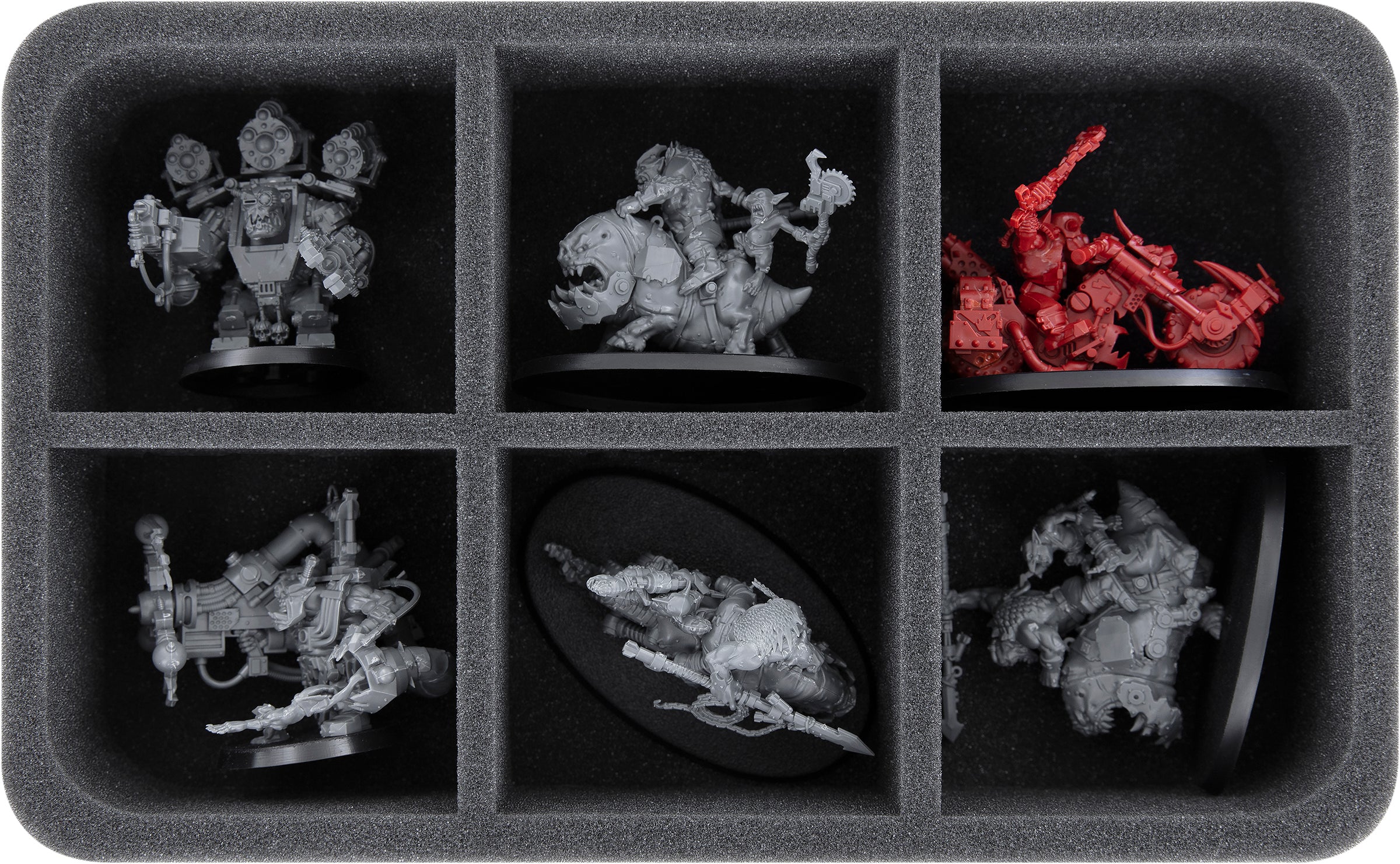 - 1 Half-Size foam tray with 6 compartments for e.g. Squighog Boyz, Big Mek with Shokk Attack Gun, Big Mek in Mega Armour (HS060A050)