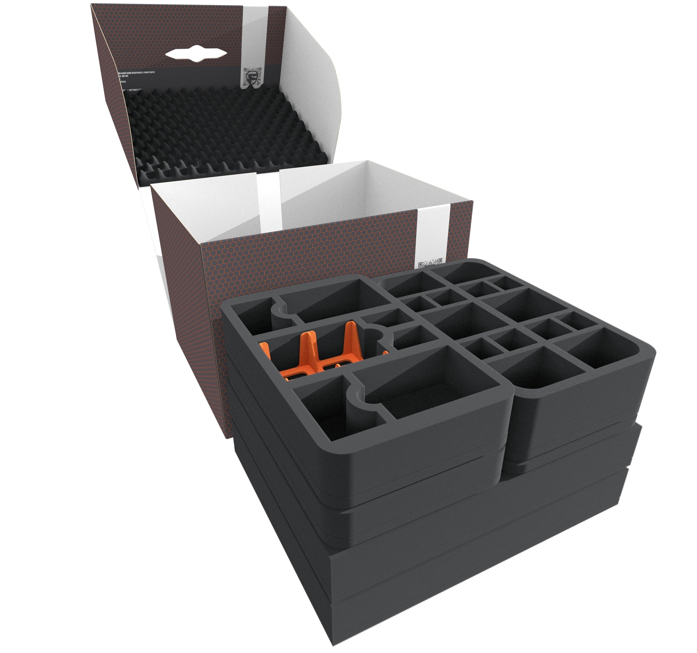 6 hero figures and 44 figures of the swarm can be stored without risk in the 2 Full-Size foam trays (FSLQ050BO) with their 50 compartments in total.