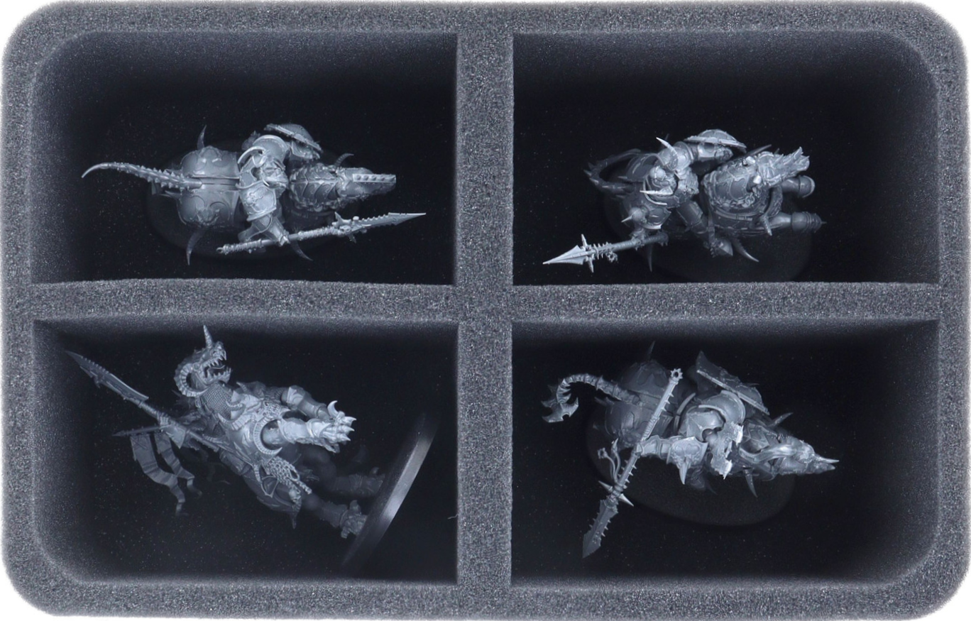 En esta bandeja Feldherr bandeja de espuma tienes espacio para hasta 4 miniaturas de tu ejército de Esclavos de la Oscuridad. La bandeja es especialmente adecuada para guardar modelos de caballería voluminosos como Eternus, Blade of The First Prince, Varanguard y miniaturas de dimensiones similares.