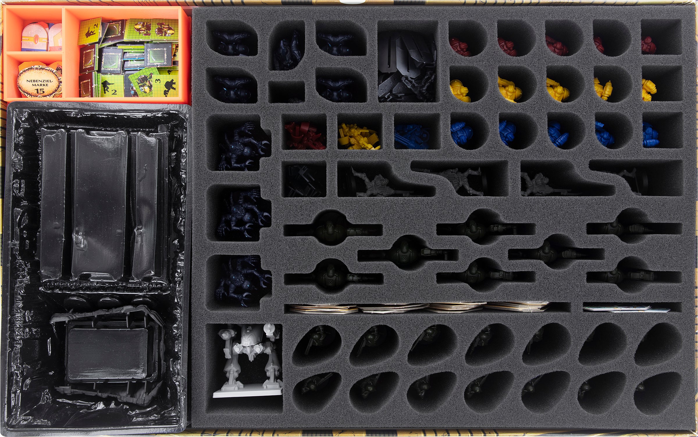 - Offers space for all 50 miniatures and the complete game accessories of the core game.