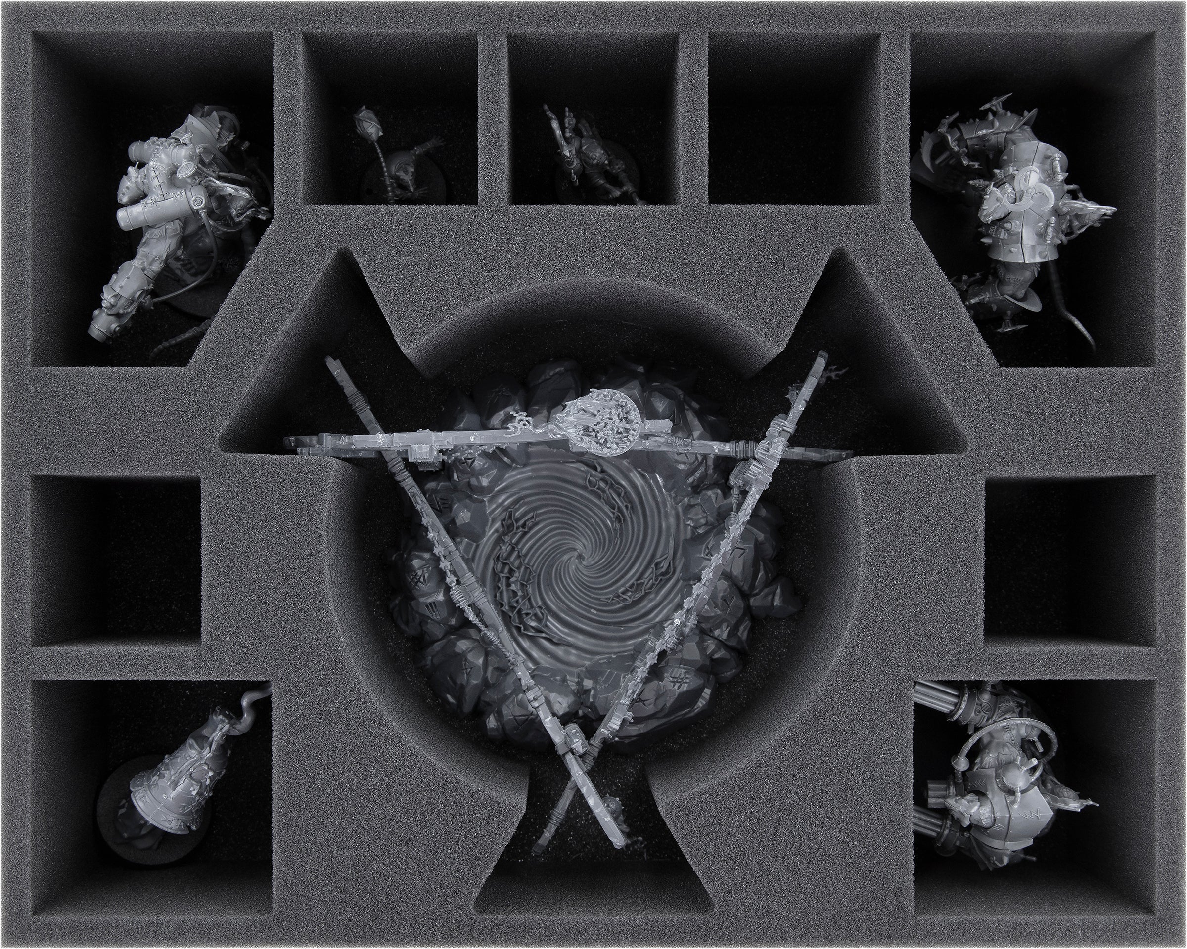 - 3 bandejas de espuma Full-Size con 10 compartimentos cada una para tres Gnawhole, Warlock Bombardier, Storm Fiends, Doom-Flayers, Clanrats, Skaven Verminus Spiteclaw's Swarm (FS085A002)