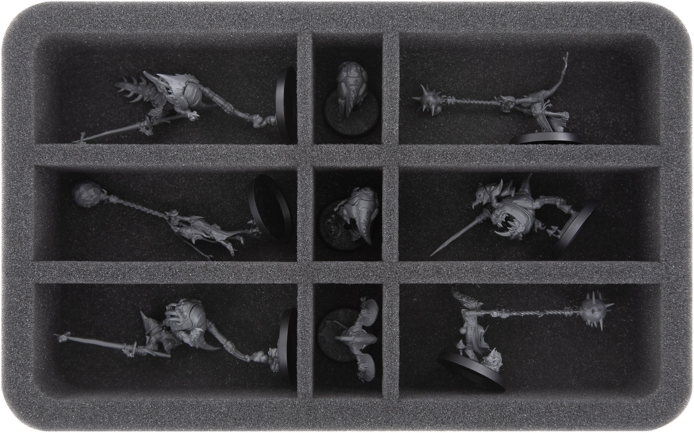 - 2 Half-Size bandeja de espuma, cada uno con 9 compartimentos para, por ejemplo, Squig Hoppers, Boingrot Bounderz (HS050WH55)