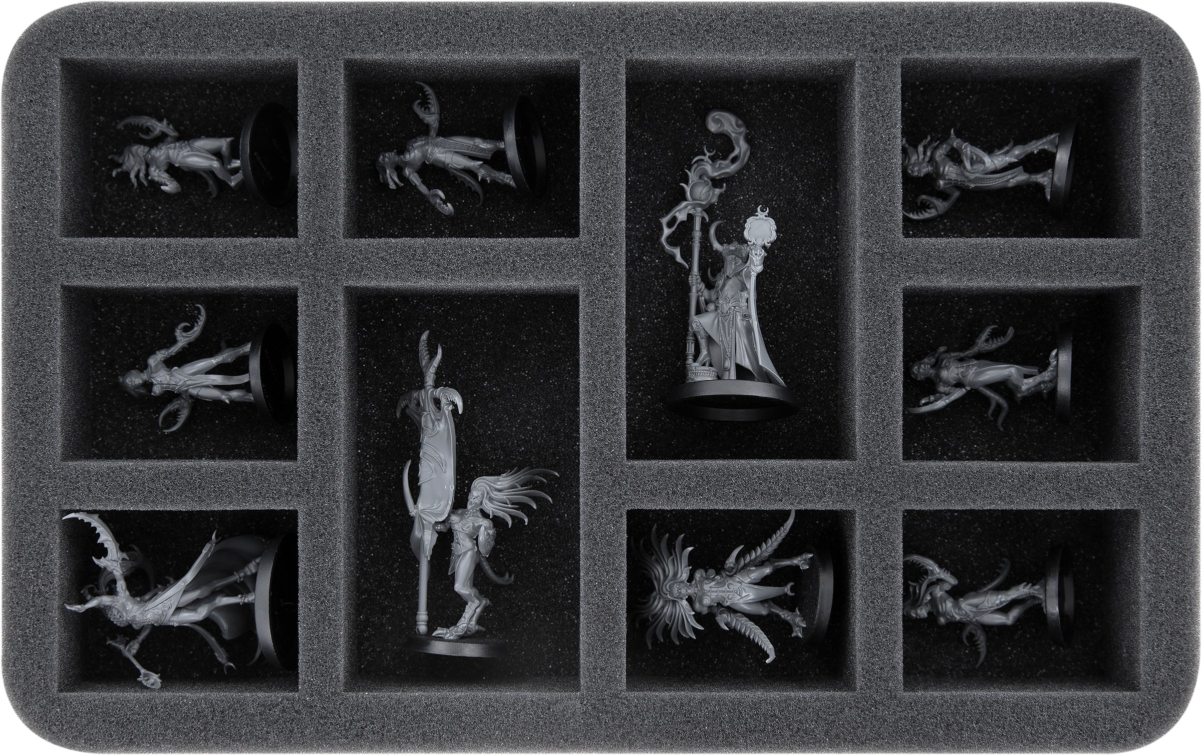 Este Feldherr Half-Size bandeja de espuma ofrece espacio para hasta 10 miniaturas. ¡Gracias al espuma de alta calidad, podrás transportar tus figuras sin preocupaciones al próximo evento!