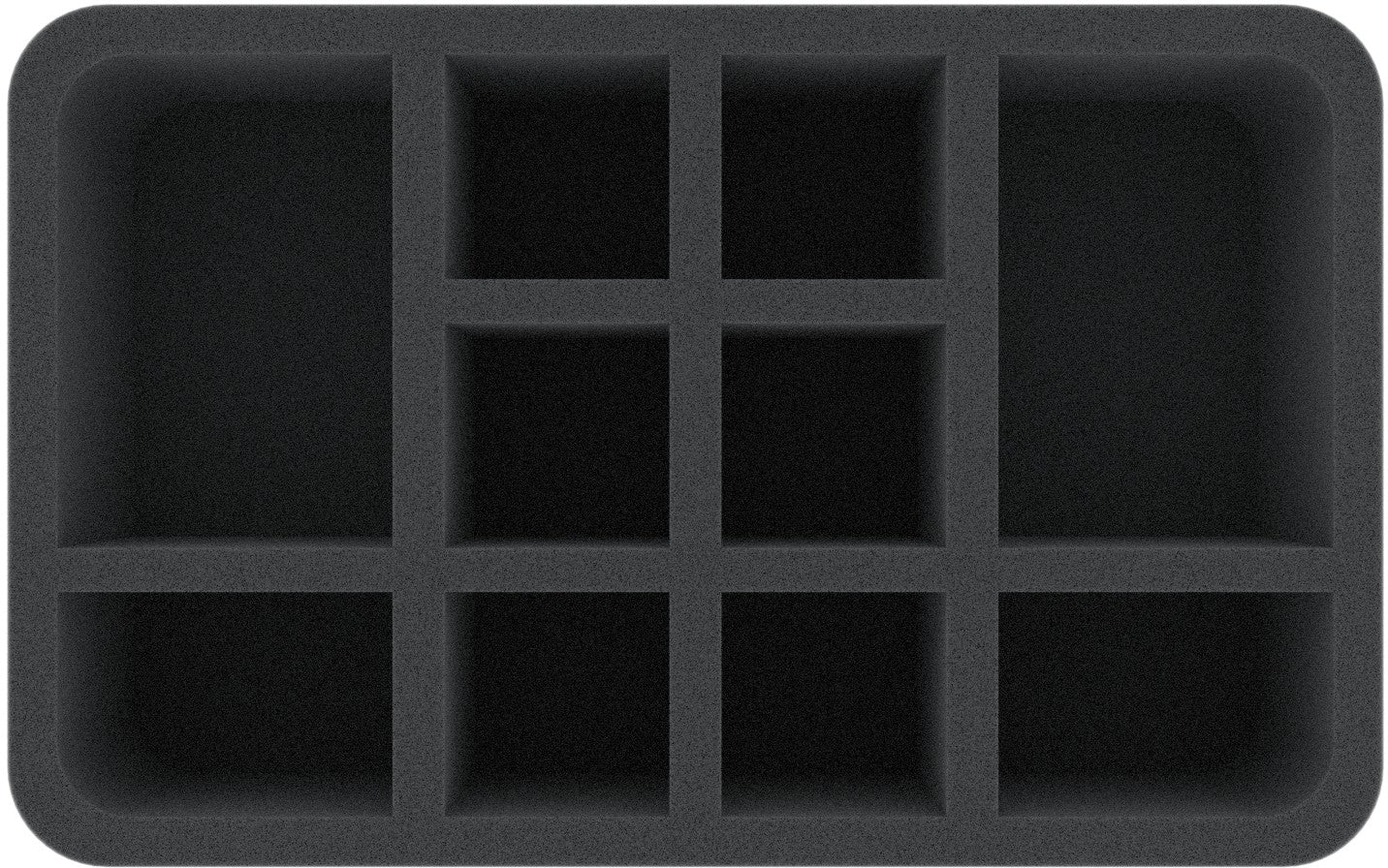 En esta bandeja de espuma Feldherr tienes espacio para hasta 10 miniaturas de tu ejército. El inserto es especialmente adecuado para guardar el Belladamma Volga, Radukar El Lobo, Radukar La Bestia y La Corte de Radukar y modelos de tamaño similar.