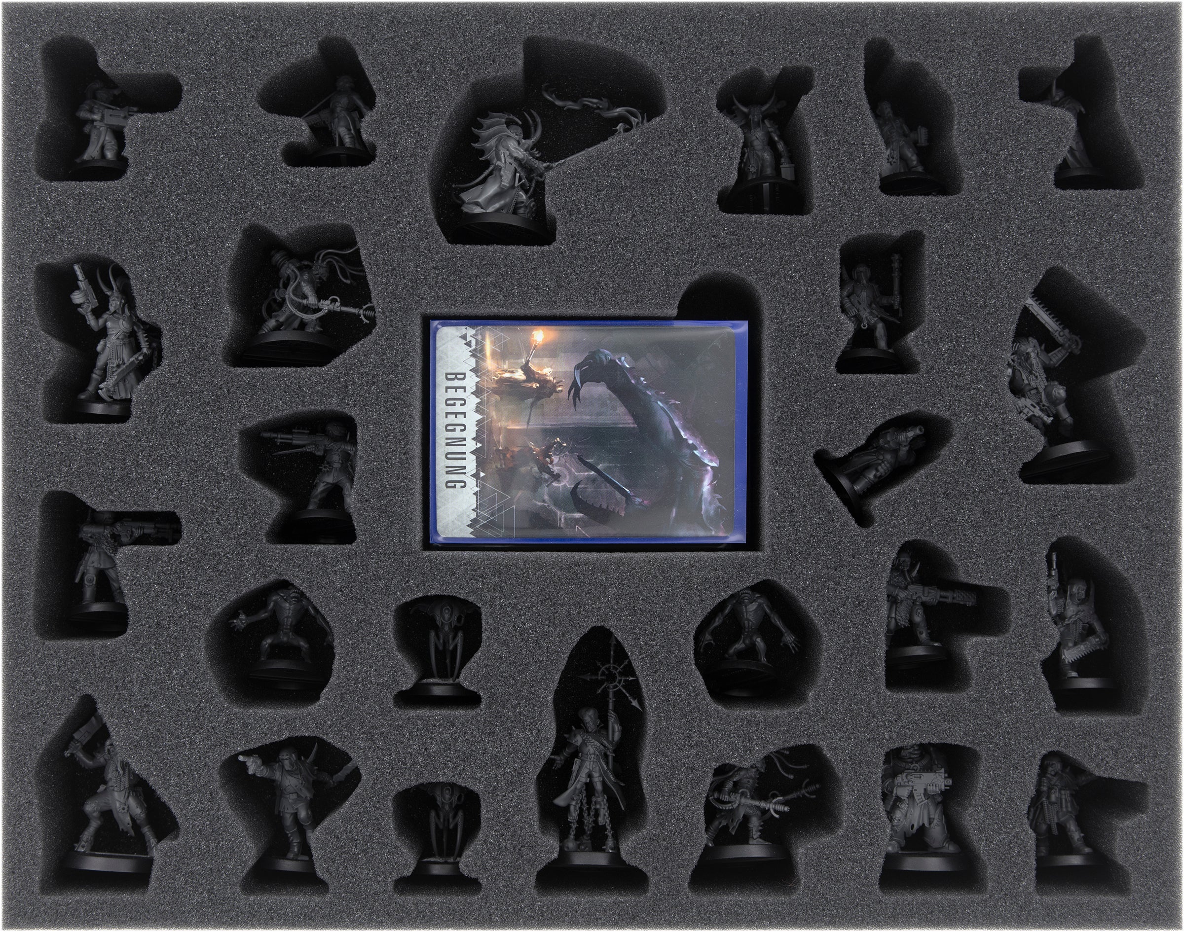 The insert with 25 compartments precisely tailored to the individual miniatures, offers all Cultists and Servants of the Abyss a safe place to stay. Thanks to the miniature-precise cut, the figures remain securely in their place even during transport. This reliably protects the sensitive parts, such as the chainsword and the chaos stave, from damage. The colors of the painted figures are also safe from scratches and abrasion.