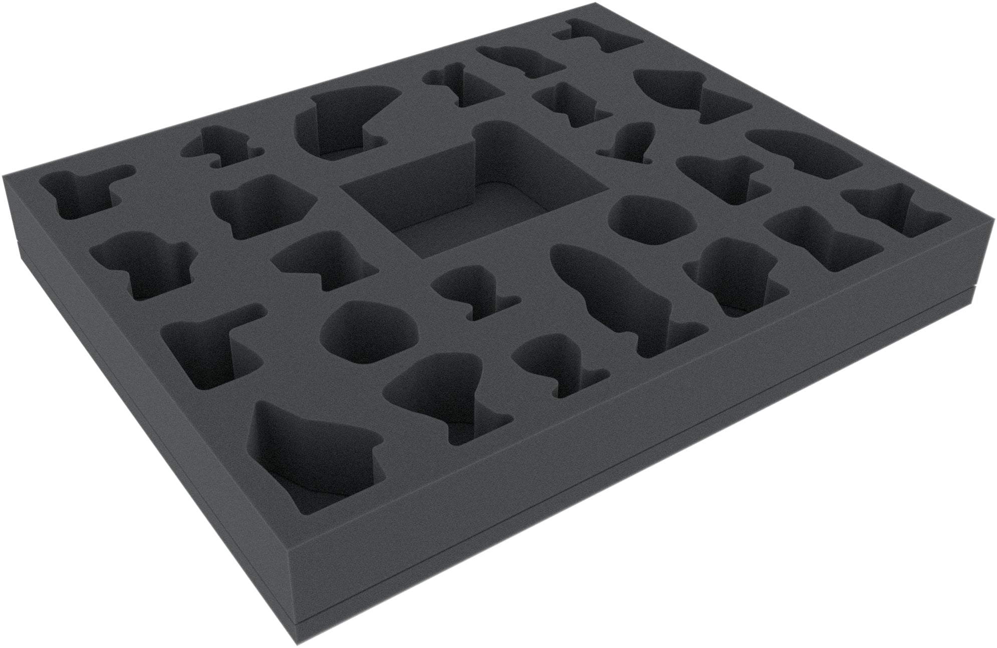 - The Full-Size foam tray has the dimensions: 345 mm x 275 mm x 45 mm total height (35 mm usable height + 10 mm foam base)