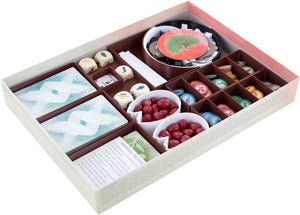 • Structured compartments keep cards, eggs, resources and tableaus separate and easy to find