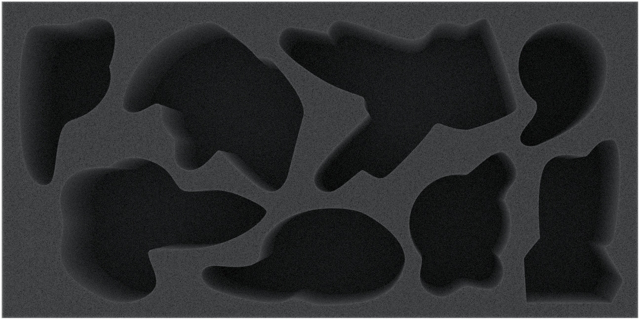 Diese Schaumstoffeinlage verfügt über 8 maßgefertigte Fächer, in denen sich die Samurai Mech Miniaturen des Brettspiels Starship Samurai sicher verwahren lassen. Der hochwertige Schaumstoff bringt Ordnung in deine Mech-Sammlung und schützt die Miniaturen vor Abbruch von Teilen und natürlich vor eventuellen Lackabplatzungen.